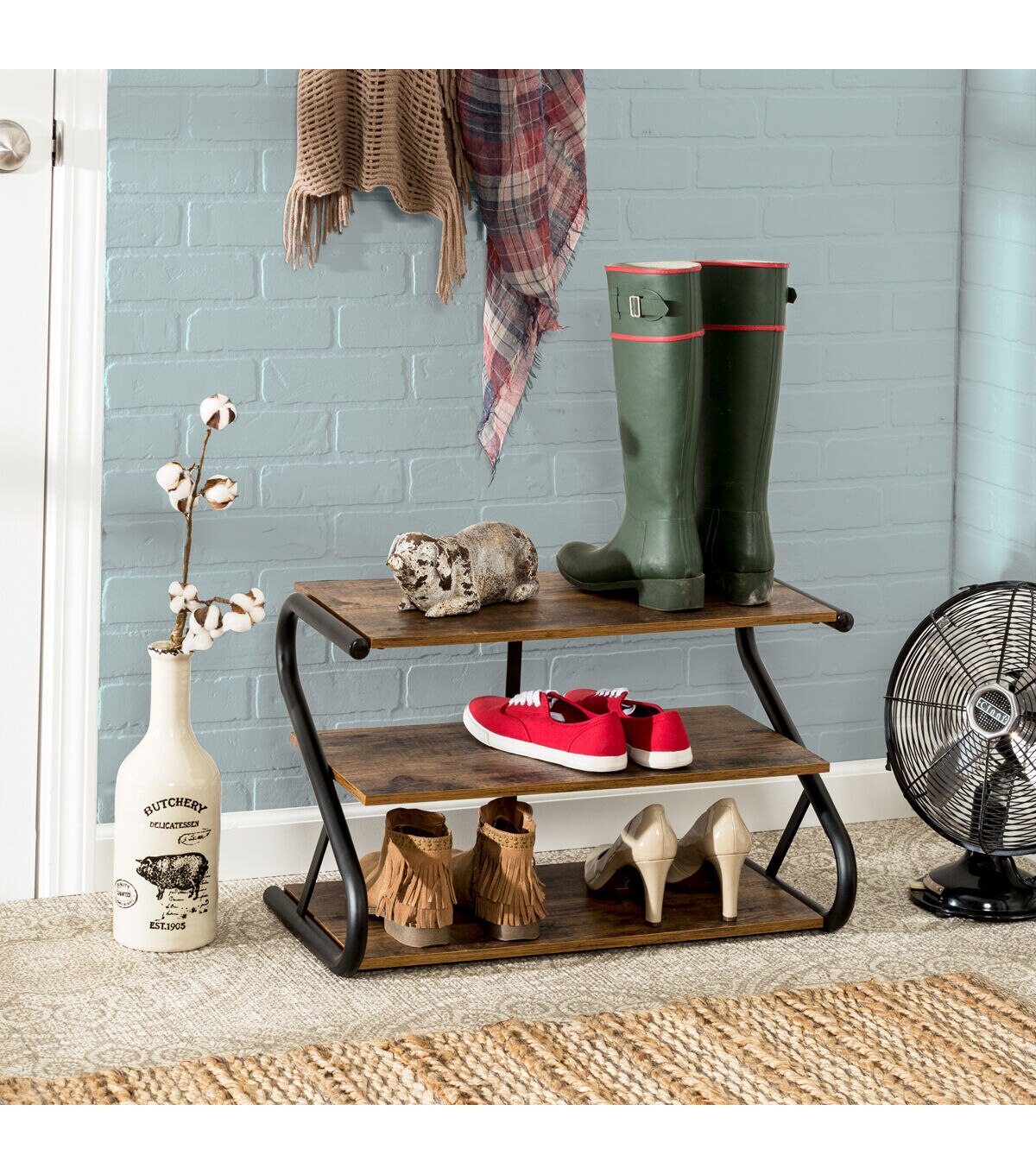 Shoes are your thing. From pumps to platforms and sneakers to sandals, you’ve got it covered. There’s only one problem, your closet can’t hold them anymore. You’re in the market for a shoe rack, but it needs to match your flair for the fabulous. The durable Rustic Z-Frame 3-Level Shoe Rack has a matte black frame that is sleek and sophisticated and the rustic finish on each shoe shelf gives it just the look it needs to keep up with your shoe game.