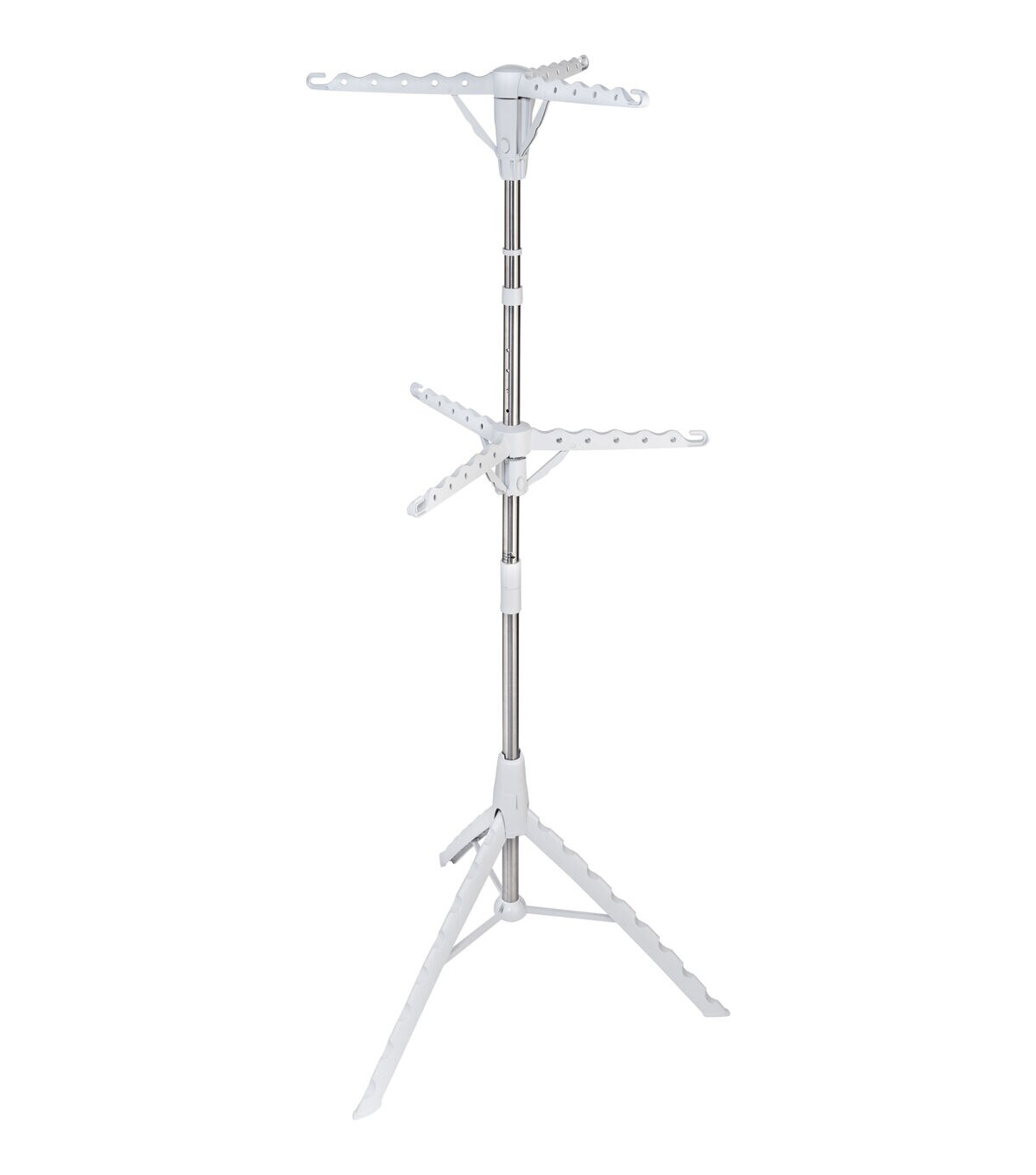 You’ve got high standards when it comes to finding fresh clothes drying solutions. Good thing all 74 inches of this 2-tier tripod clothes drying rack has worked its way into your laundry days. With a push of a button, you expand the rack and create a spacious place for drying clothes inside without grazing your floors. Now your lacy tops and heavy jackets live a brighter life while you save on energy costs. And when you’re not enlisting its drying assistance on chore day, simply fold it up for next time.