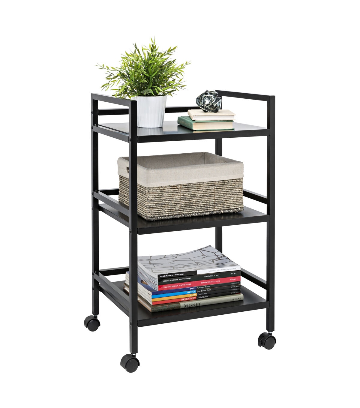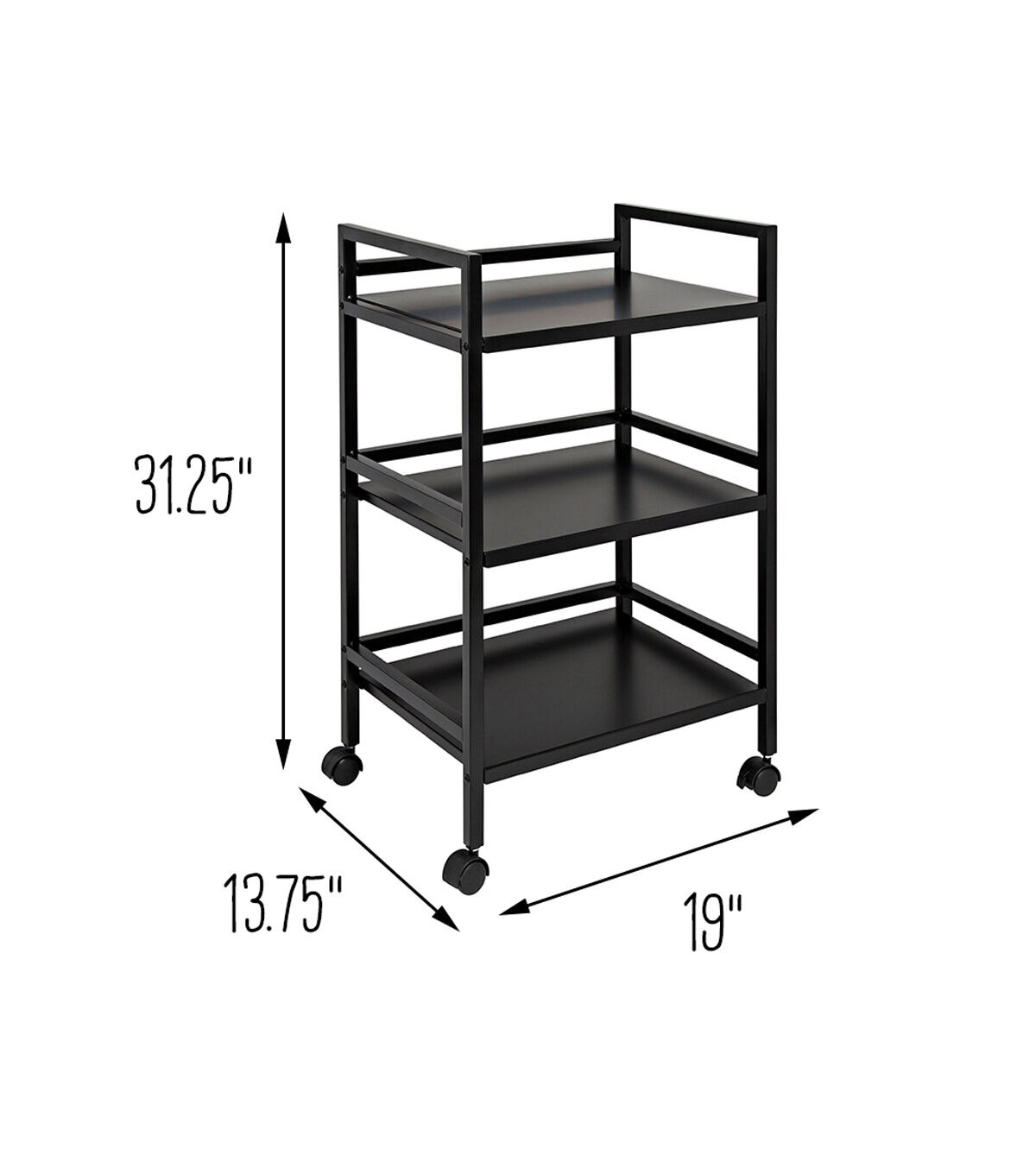 Easy to transport with plenty of storage space, this rolling metal cart ceatures casters for smooth mobility and two locking wheels for stability. Sturdy metal shelves can withstand up to 10 pounds each, making this perfectly suited for home office storage or can double as your arts and crafts cart.