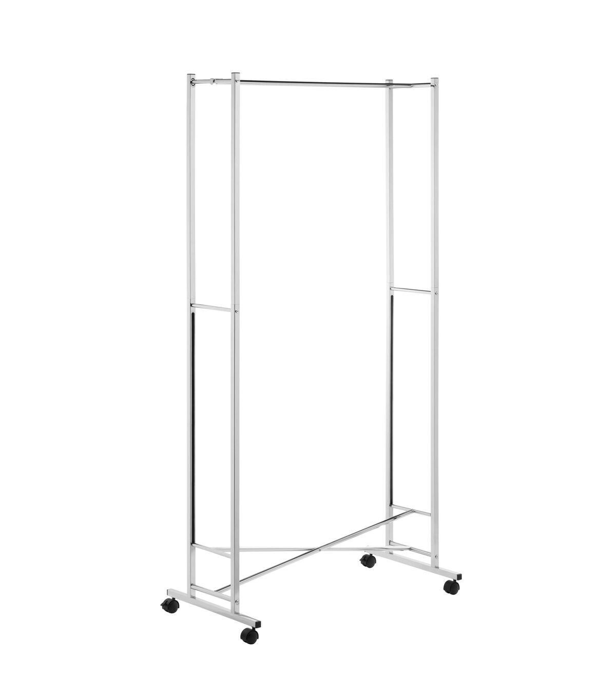 This space-saving garment rack is made from a sturdy steel frame and goes from room to room on smooth rolling swivel casters that easily lock in place. Perfect for additional clothes storage space or to hang garments to dry in the laundry room, this portable garment rack folds down to 1.5 inches flat when not in use.