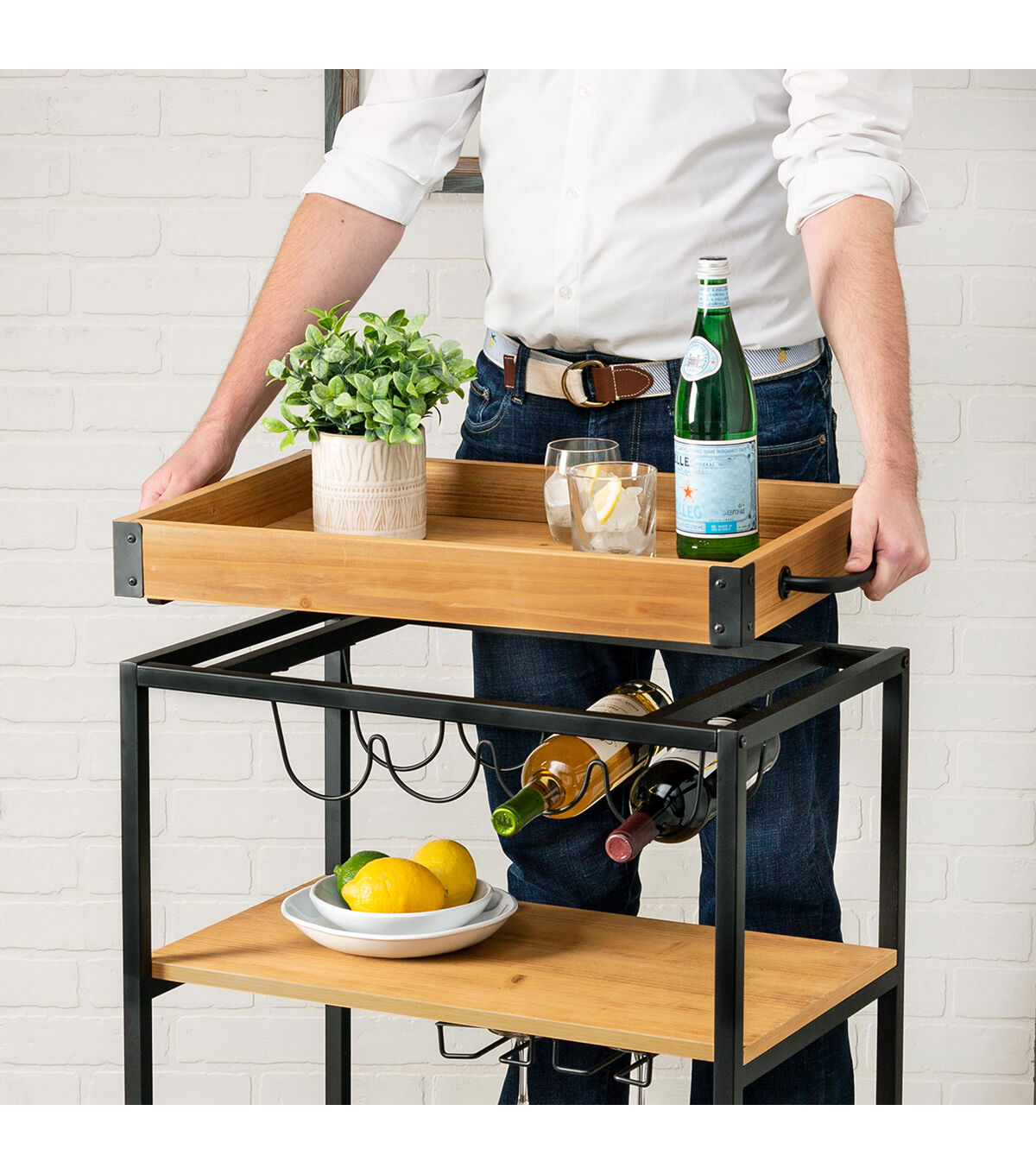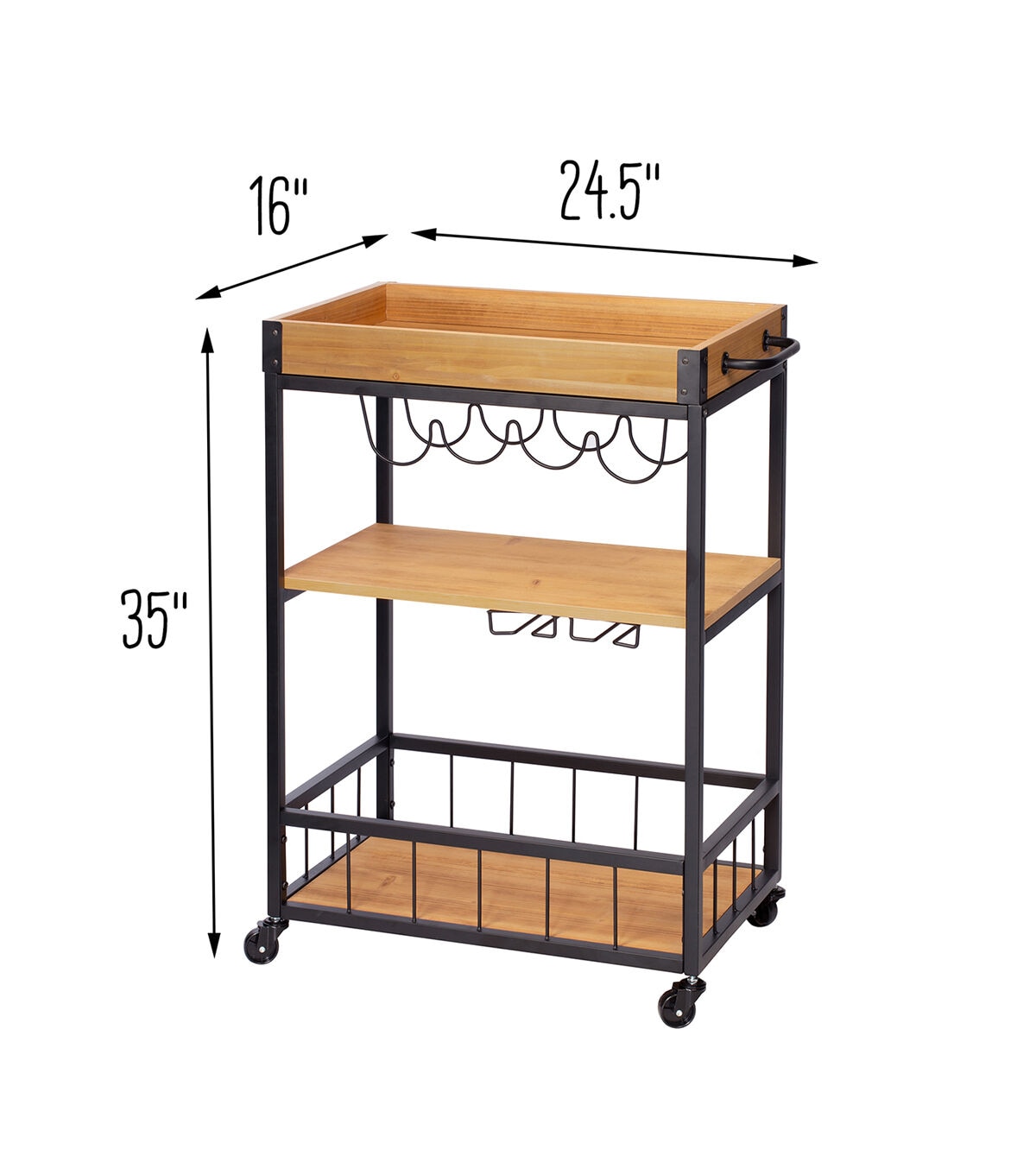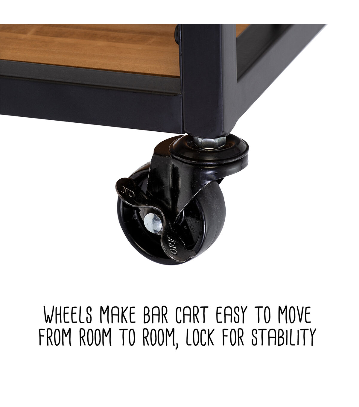 - Wheels make bar cart easy to move from room to room, lock for stability