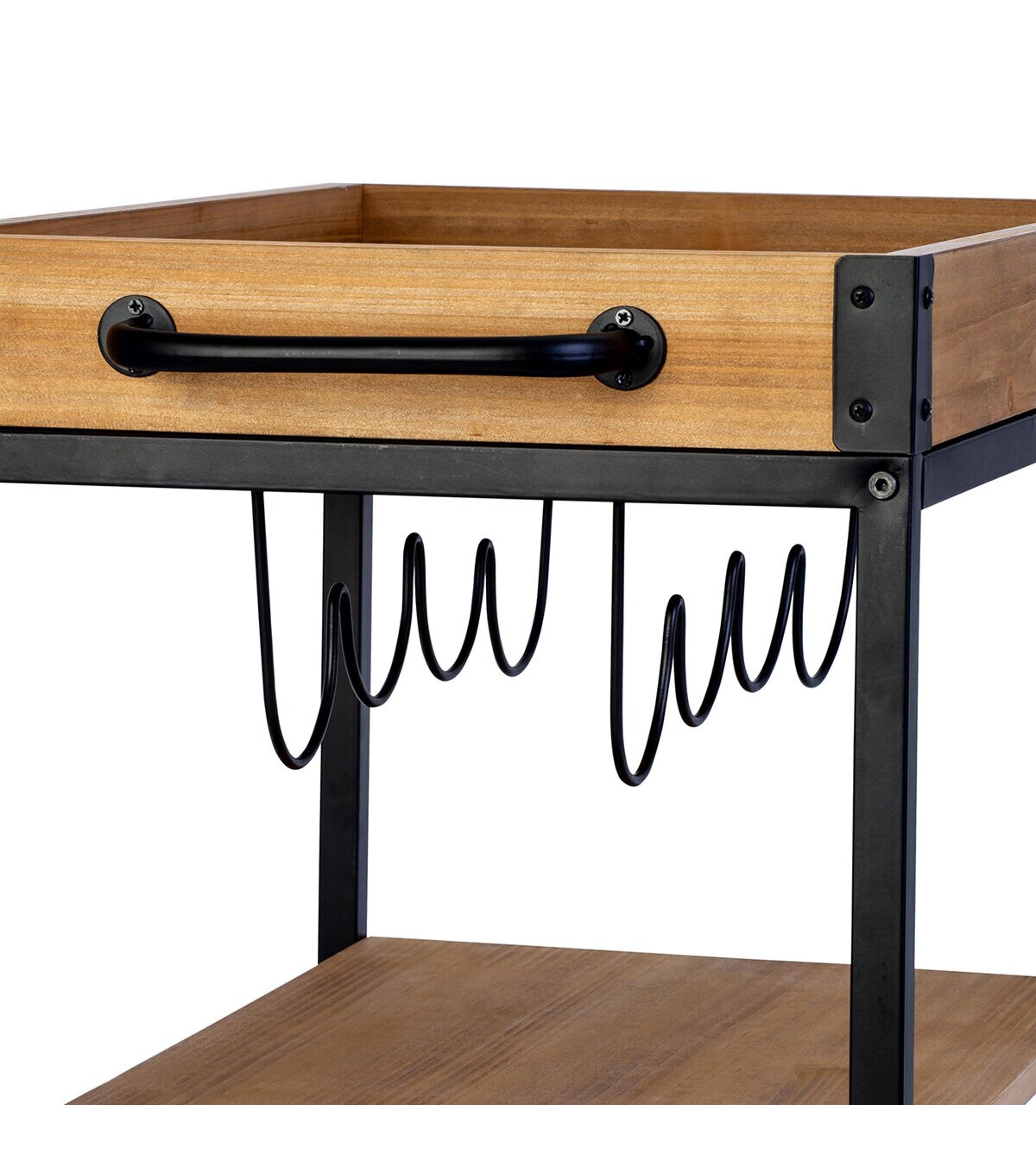 Let this industrial bar cart be the life of the party as a rolling bartender. Its removable tray top lets you take the snacks right to your guests and there’s extra storage in this kitchen cart for up to four bottles of wine and stemware, too. Durable with wheels that not only glide smoothly, but lock for stability.
