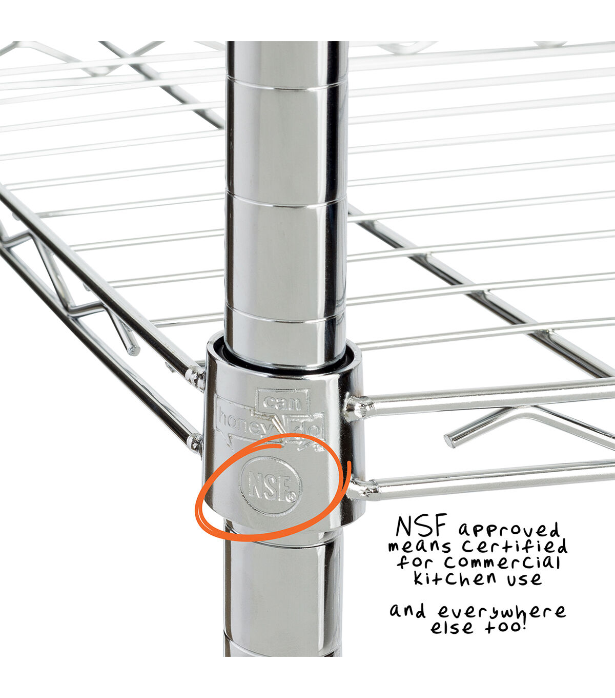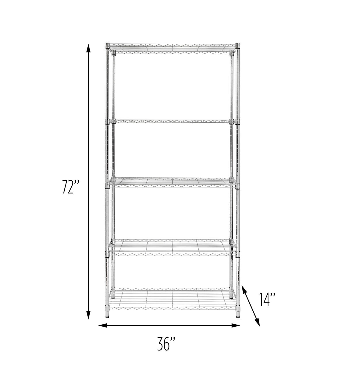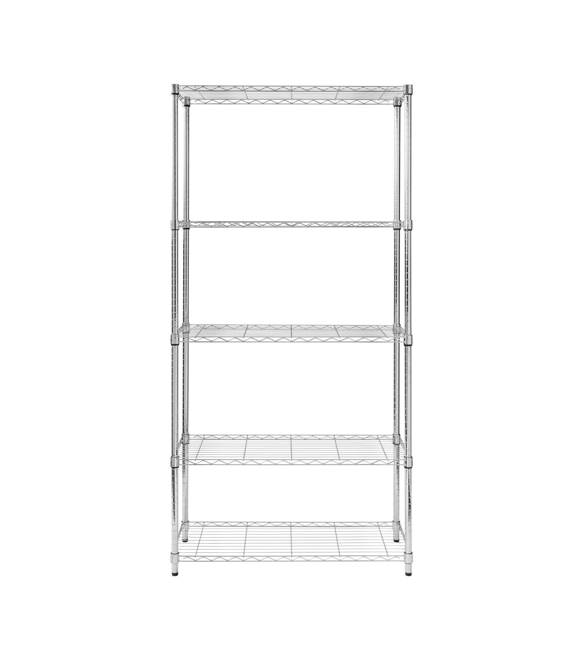 You love the versatility of shelving, if your shelving is versatile, that is. Well, it most certainly is with the heavy-duty 5-Tier Shelving Unit in Chrome. Maximize storage in the garage or any room of the house with this durable unit that can hold up to 800 pounds per shelf. Adjustable shelving heights is convenient for when shelving needs change or oddly-sized items arrive, like the large aqua deer statue that he just “had to have” from his last guys’ trip... hint, it’s going in the garage. Commercial-grade certification makes this the perfect kitchen, garage or closet shelving unit. Your shelving needs to keep up with you – we make sure it does.
