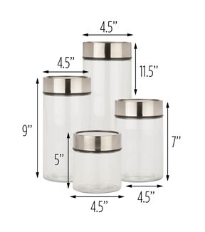 Make your life easier with the Honey Can Do 4ct Steel & Glass Canisters Fresh With Date Dials. The fresh-date dials on the lids of this glass jar set take the task of remembering yet another thing off your mental load. Whenever you open a fresh bag of coffee beans or a new box of pasta noodles, twist the dial to the date, then lock in freshness and flavor with the pressure-fitted stainless steel lids. No more searching for a rubber band to cinch shut a ripped open bag. No more hunting for a marker that works to scribble the date onto the bag. With the handy date dials on this attractive set of kitchen canisters, just set it and forget it.