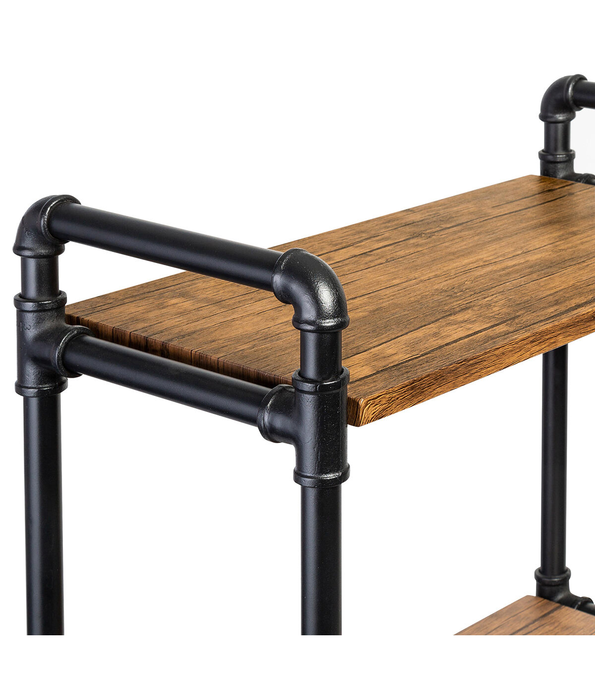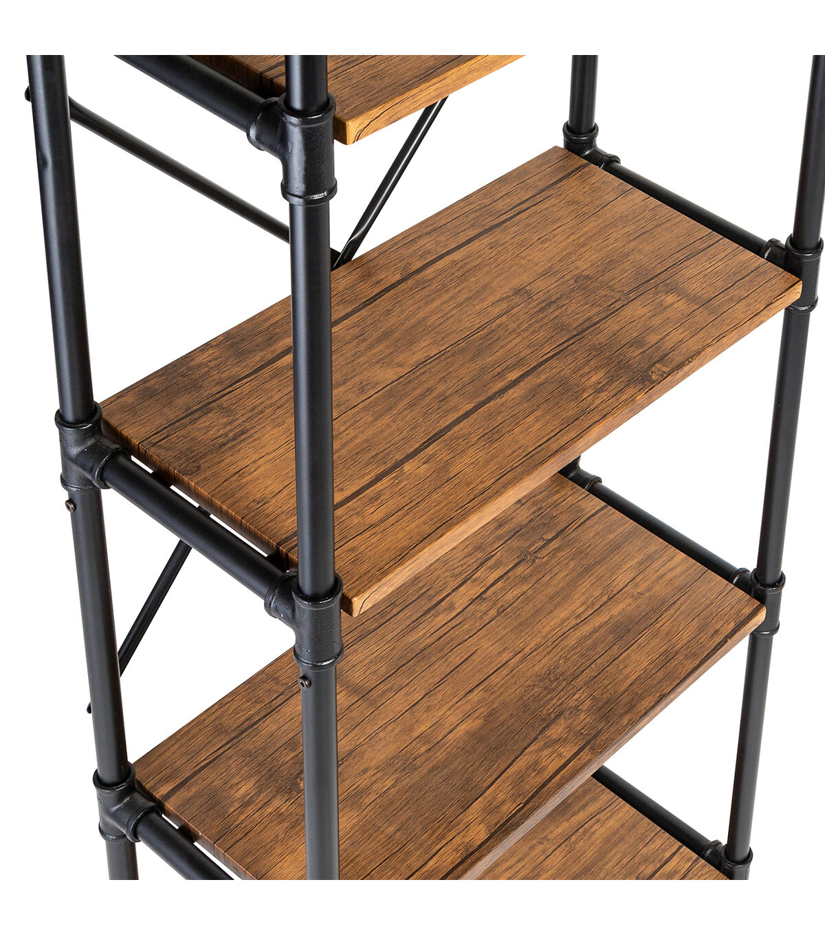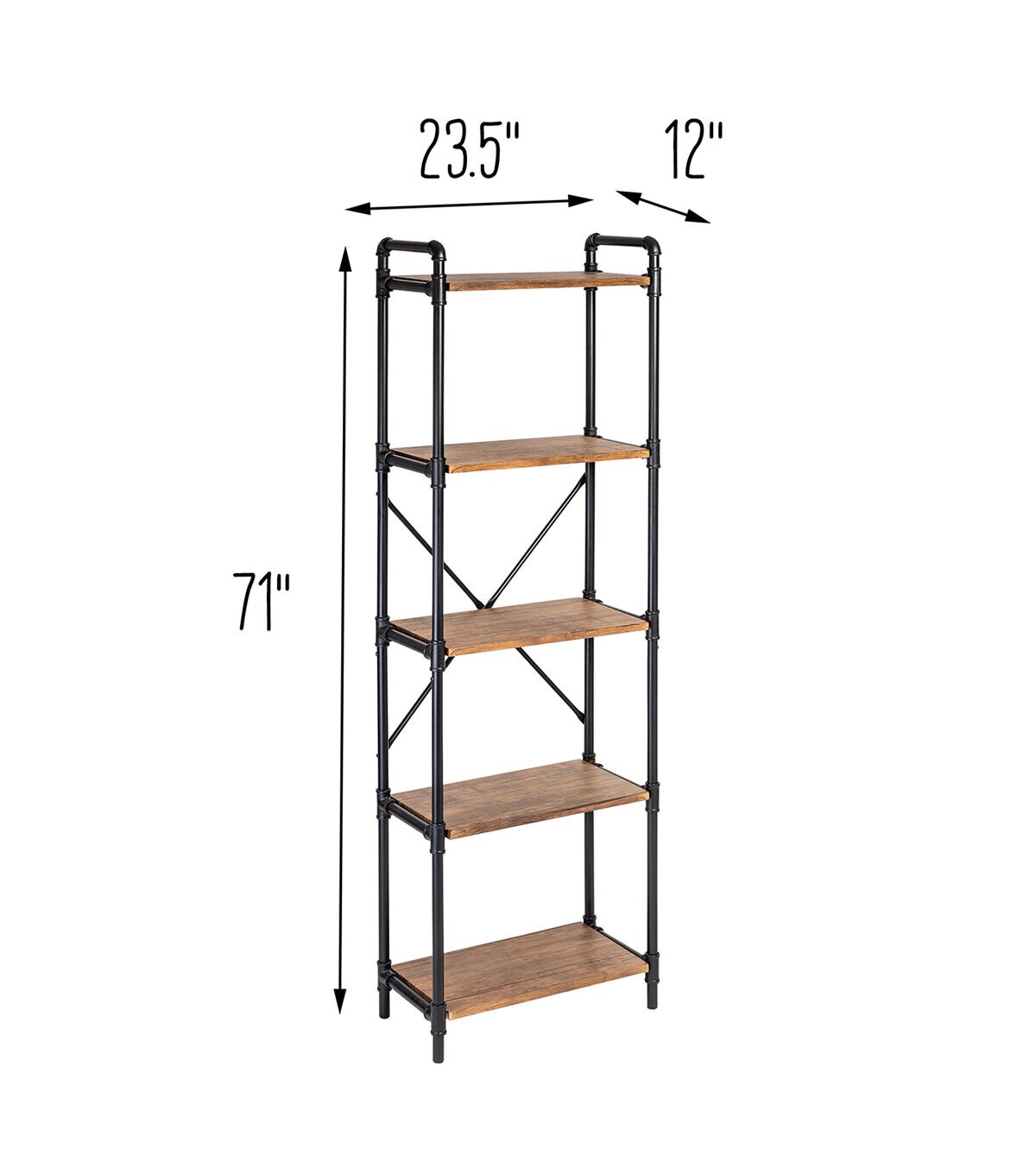 - Powder-coated black steel with MDF shelvesReinforced X-frame provides durability