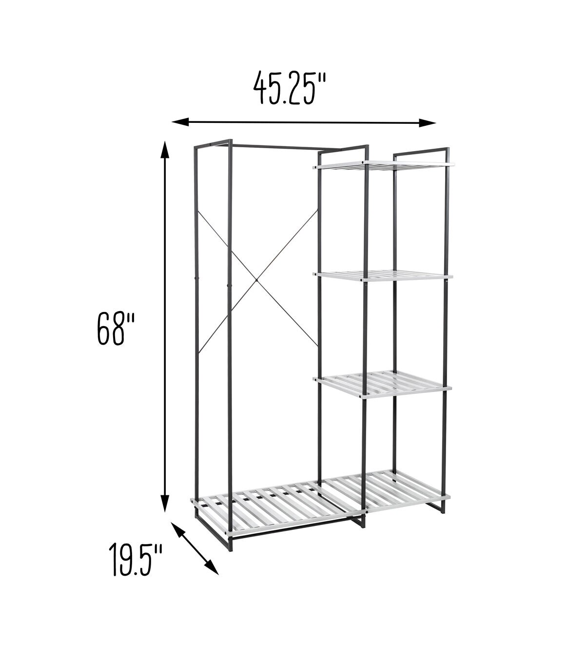 - 45.2in L x 19.3in W x 68in H