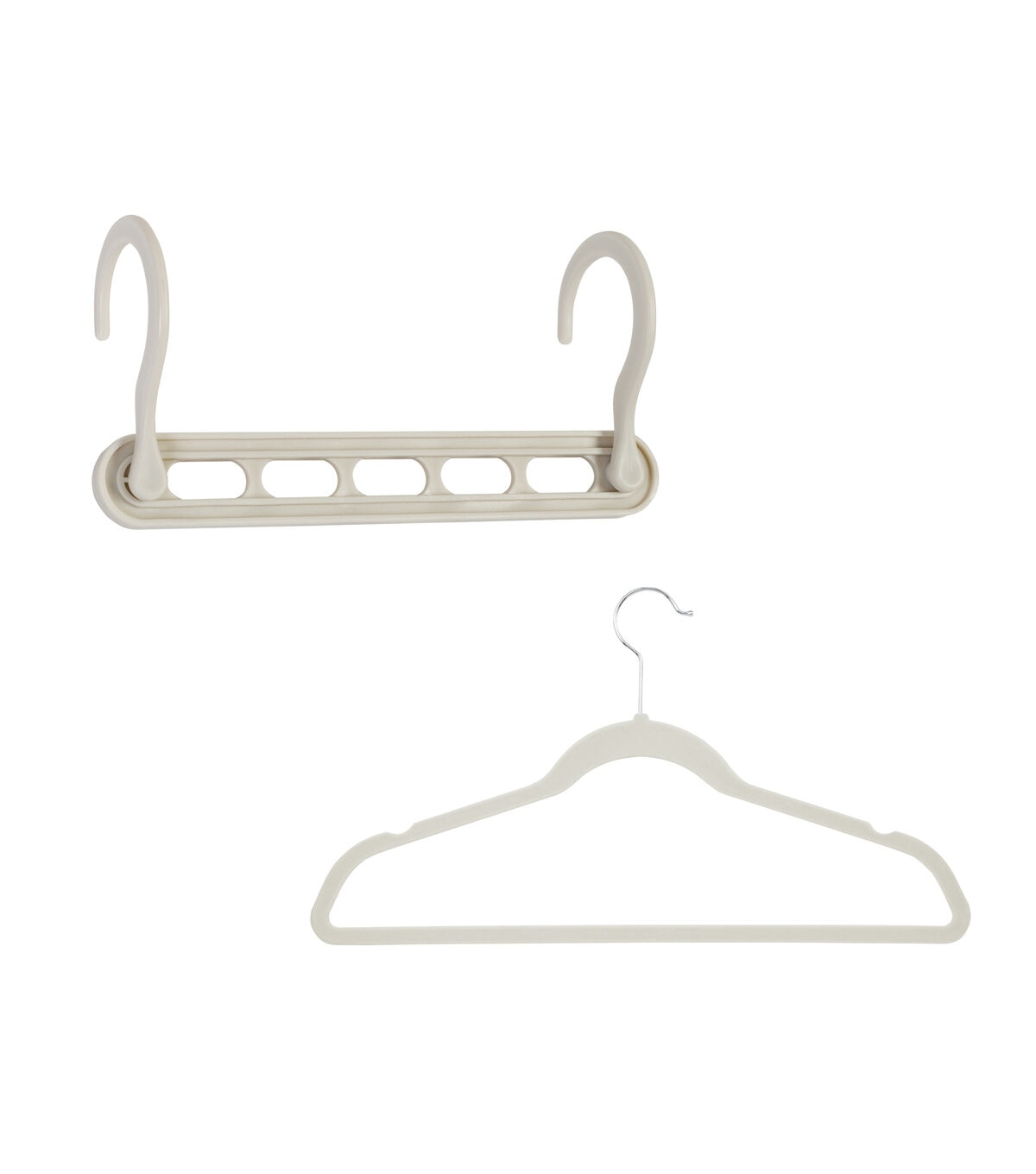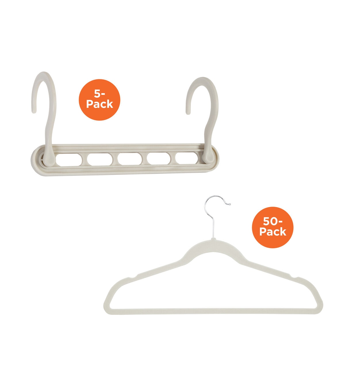 - Combo pack of coordinating hangers can quickly reorganize a closet