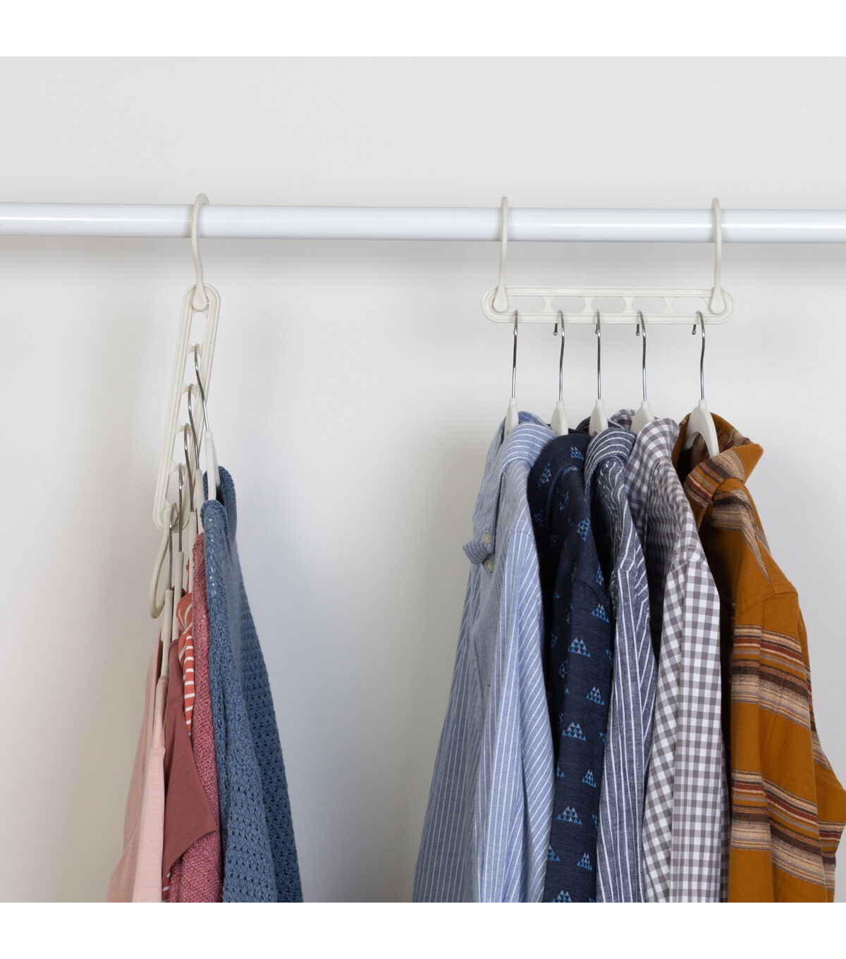 Sometimes it’s good to start from scratch. With this generous combination set of 55 total hangers, it’s possible to start anew and scrap a whole closet’s worth of hanger hodgepodge (looking at you, broken plastic and bent wire hangers). The collapsing and velvet hangers work together as a system to give organizational options that can be customized. If a full wardrobe has pushed your closet’s capacity to the max, cascade more of the five collapsible hangers so that five items can hang on the closet rod in the space of one. If there’s space, then hang both of the collapsible hangers hooks to horizontally hang up to 10 velvet hangers from it. And with a clean and coordinated white finish on both hanger, expect an entire wardrobe to shine with a subtle polish and sophistication.