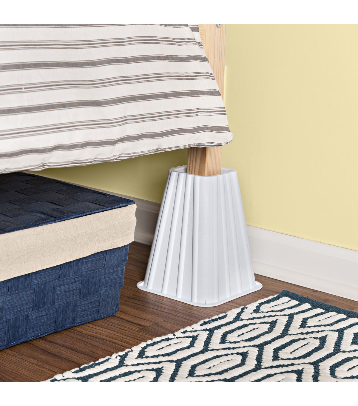 In your quest to discover new under bed storage ideas, you come across this 4-piece set of Stackable Bed Risers. Their sleek, ivory design makes them a chic addition to any bedroom. Now not only is it easier to vacuum and dust under your sleeping domain, it’s also easier to store your extra stuff. These durable housekeeping helpers add 7.5 inches of bed height to any size frame. When working in unison, the risers can handle up 1,200 pounds, or roughly the size of a small bull. For those who prefer not to nap with a small bull, these stackable bed risers elevate any type of furniture that could use a lift, too.