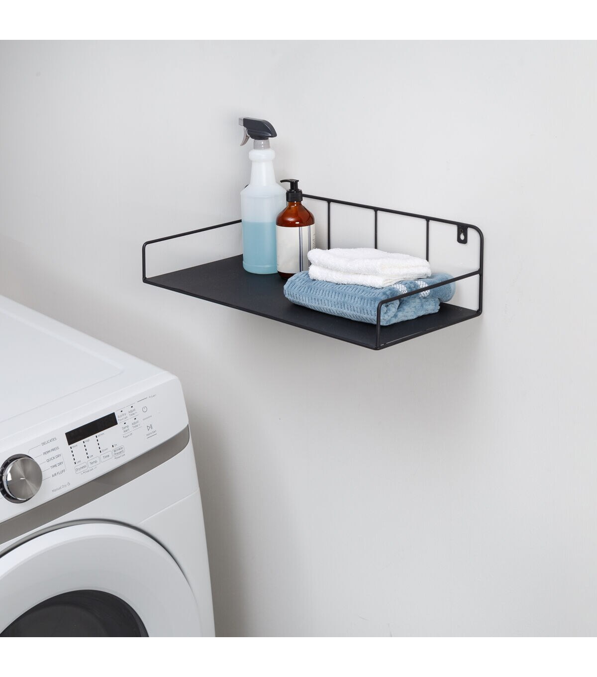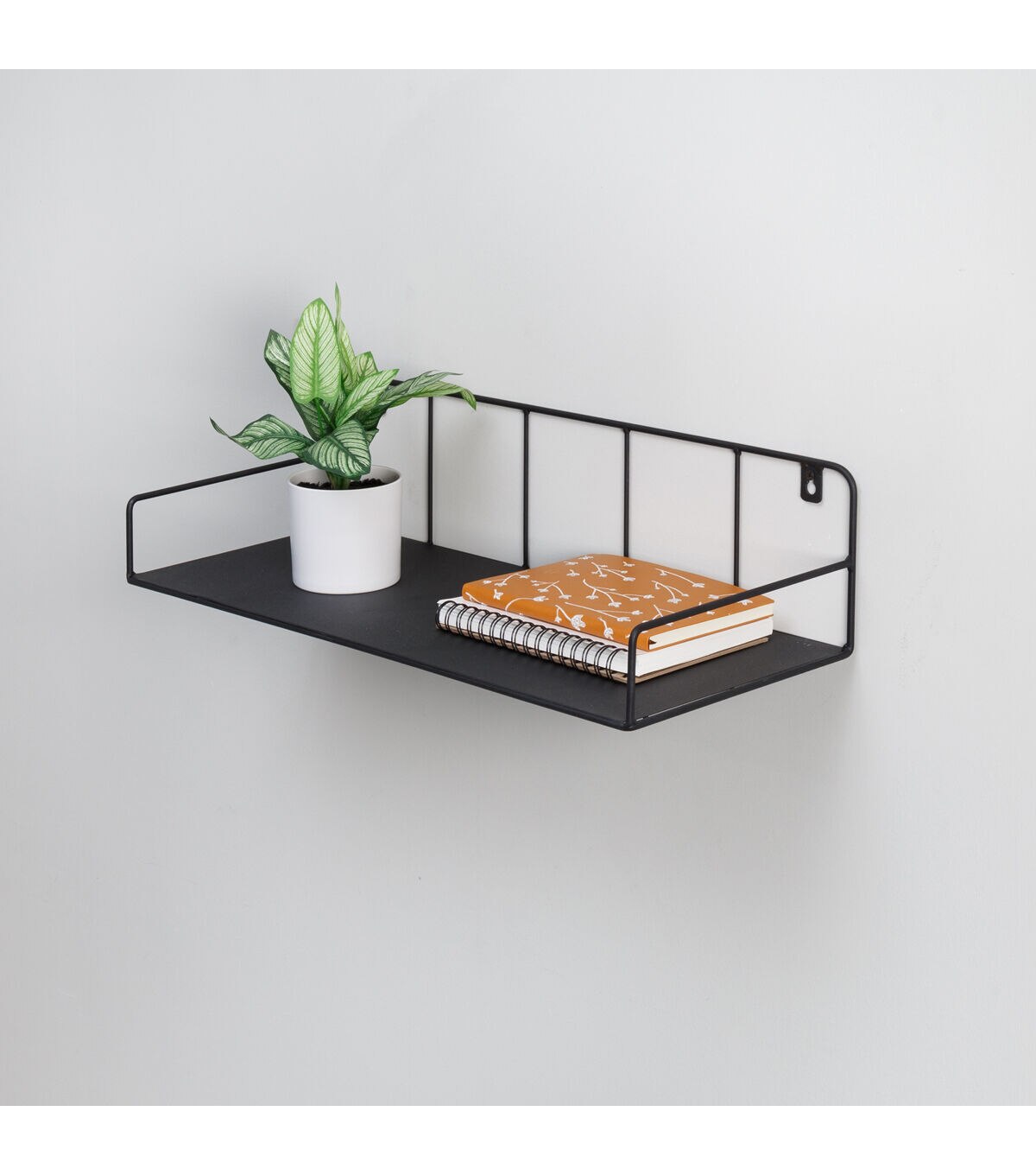 Multi-purpose, strong, curvaceous, and bold, this metal floating shelf showcases an exquisite mix of function and beauty. Designed to be both a wall mounted or an over the door shelf, the options for where you put this black stunner are endless. The sturdy all-metal build is perfect for organizing the laundry room, boosting kitchen storage, or adding display space to any room. Plus, it looks utterly fabulous while doing it! The soft curves contrasted by sleek lines combine for a design that is as wow-worthy as it is versatile. The curved side bars are a particularly wonderful feature that ensures items like books and beauty products don’t tip off the edge. Easy to hang and made to last, this is the black floating shelf that your décor has been craving!