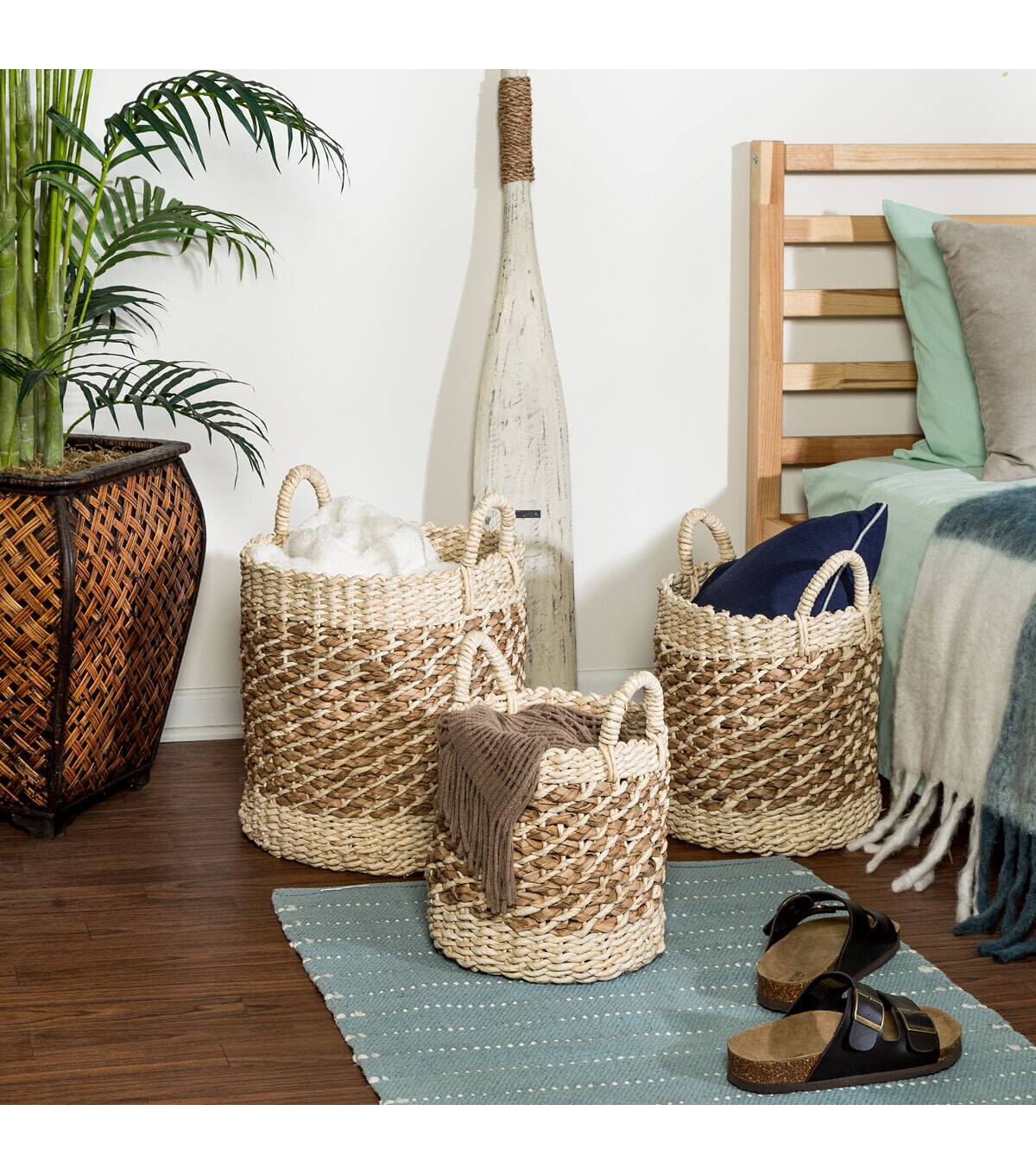 You were wondering how to organize your room when you moved into your new apartment. It was small, after all, and closet space was at a premium. Luckily these Nesting Storage Bins from our Coastal Collection entered your life to save you space in style. Their naturally woven exteriors neatly fit into one another when not in use. You love how they provide you with extra closet storage and are completely portable with their sturdy lift handles. Sometimes they double as bins for extra linens, off-season clothing or a new play arena for your cat. Whatever their function, you delight in the way the soothing hues calm down all the clutter.