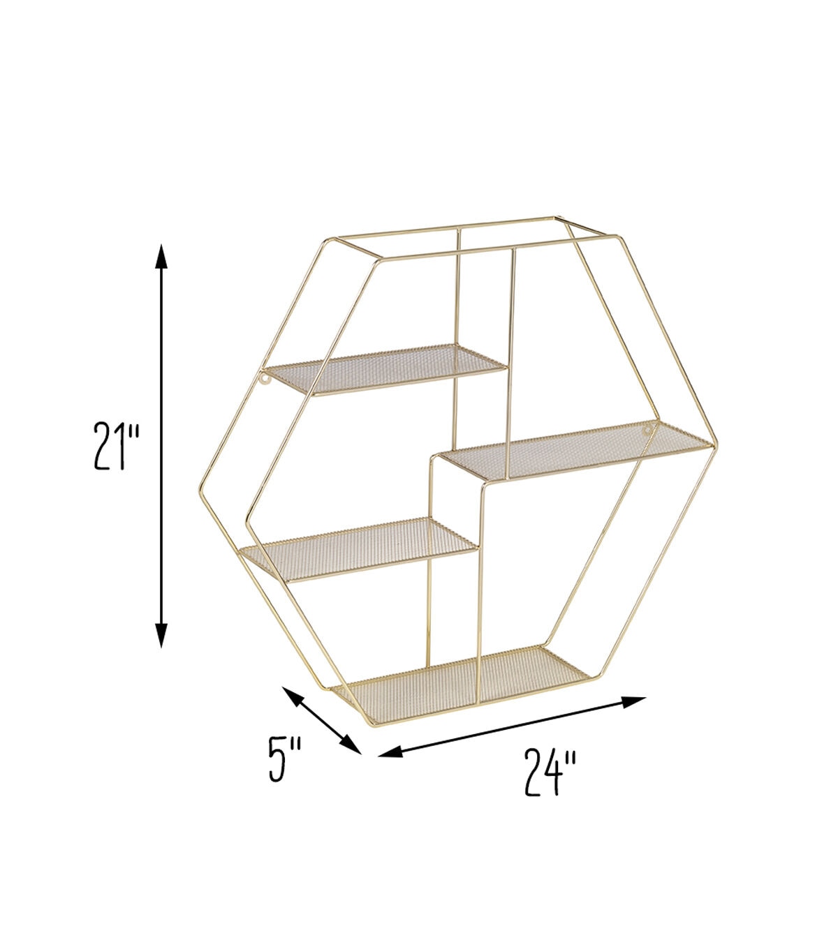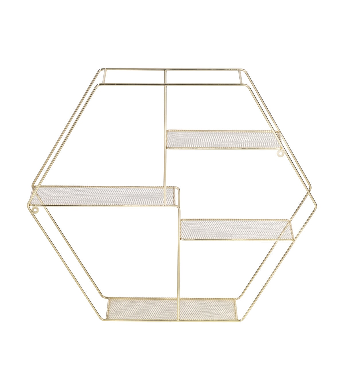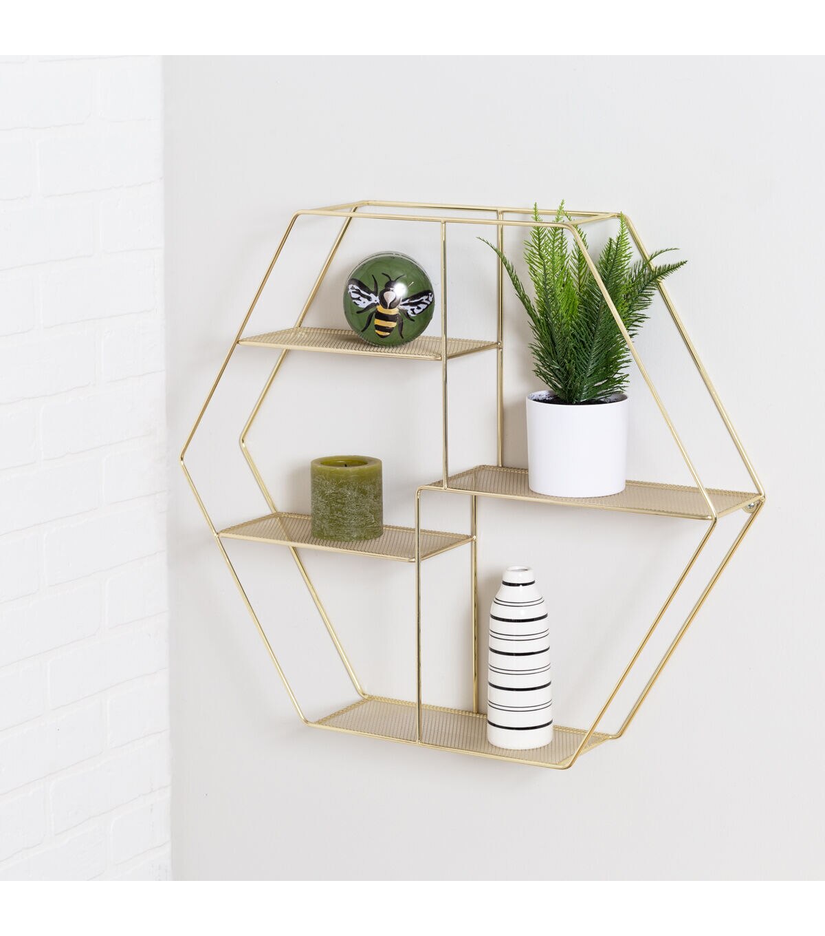 This geometric wall shelf is the perfect design middle ground between a floating shelf and a bracketed shelf. On the one end, the frame’s four shelves have a very minimalist and delicate design that echo conventional floating shelves. Yet at the same time, the gold hexagonal metal frame that connects those light shelves lends th shape and structure of a traditional set of a shelves. Put together, this decorative wall shelf makes an arresting addition to the aesthetic of any space. Whether it’s used to display a favorite set of pictures frames or a collection of a exotic tropical house plants, this golden four-tier shelf is sure to draw plenty of glances.