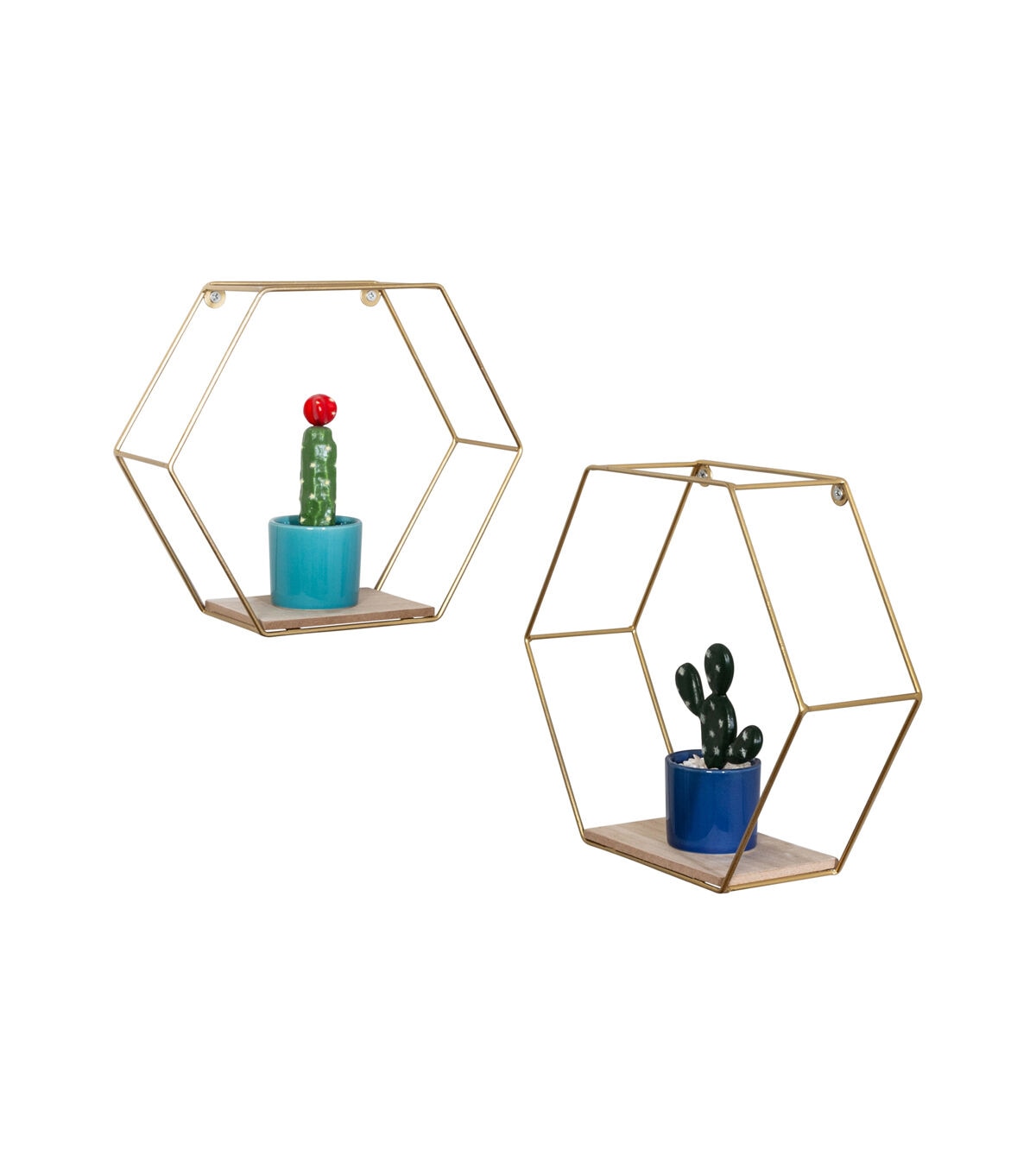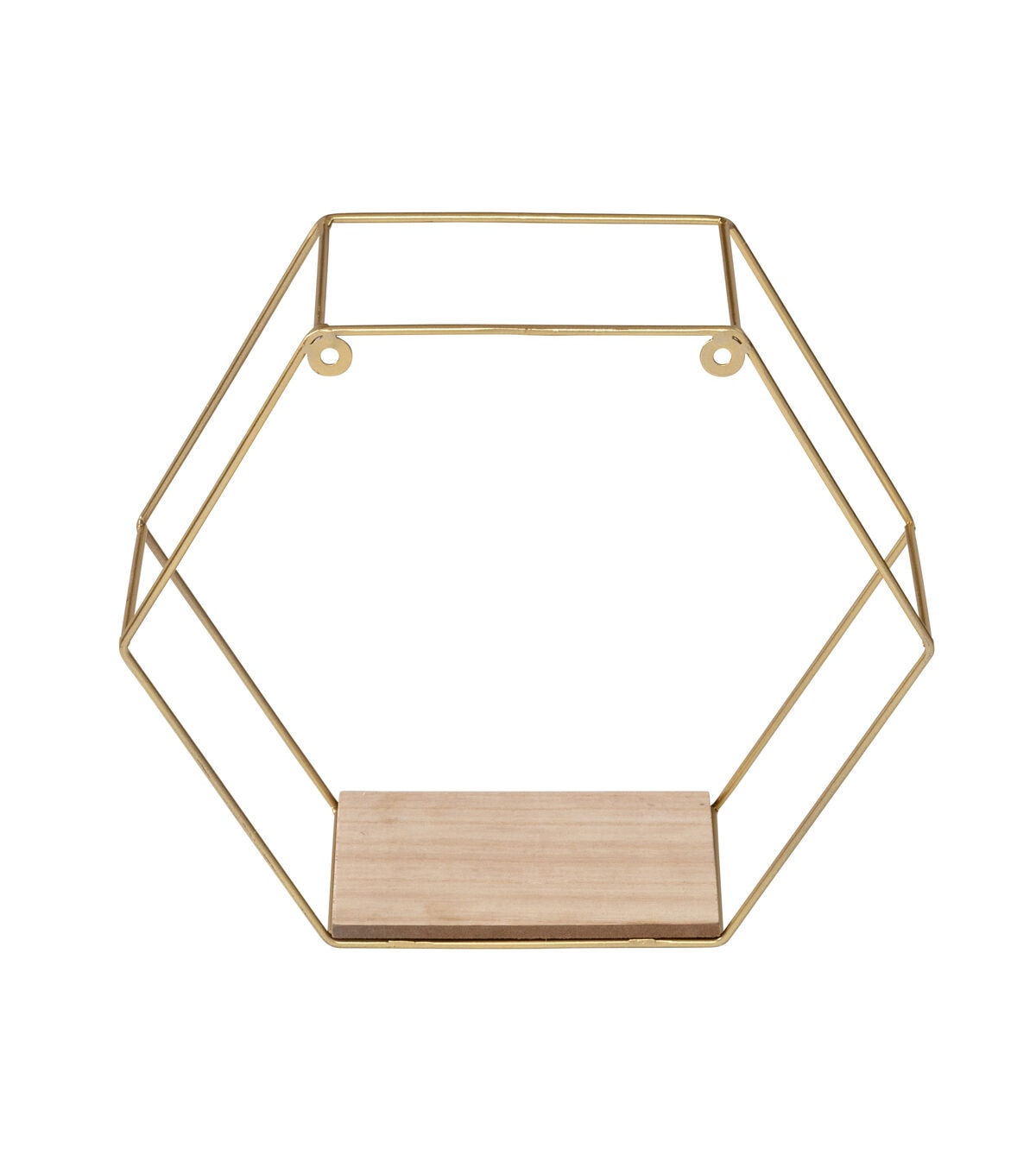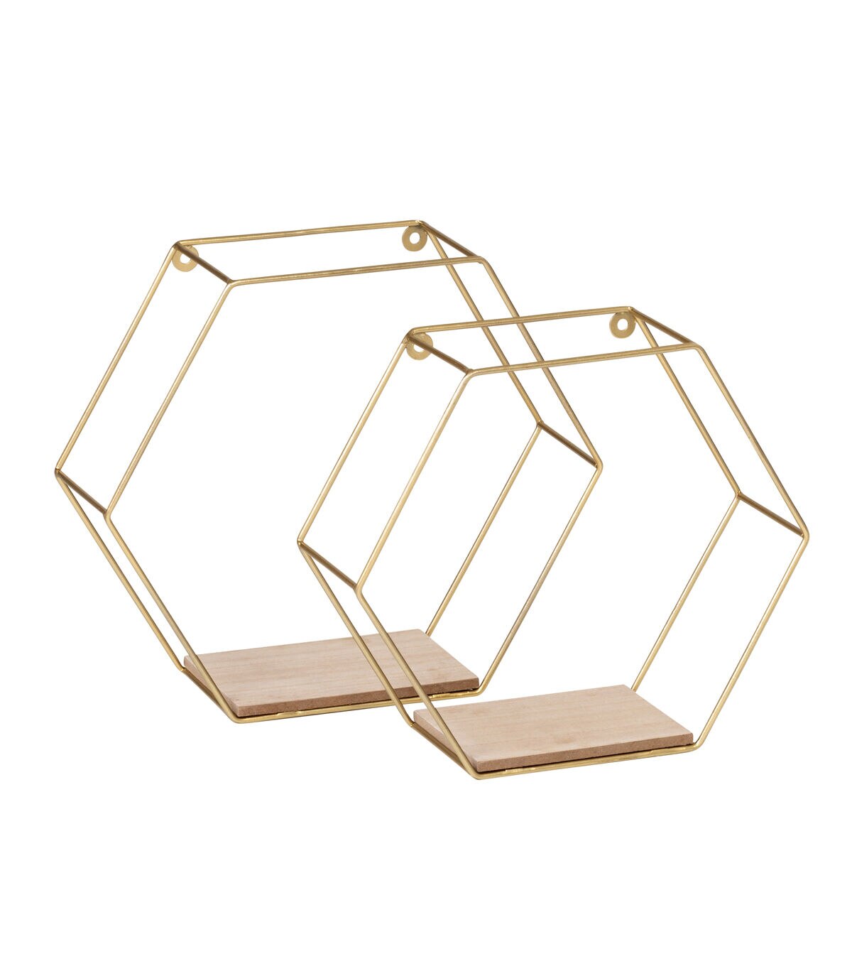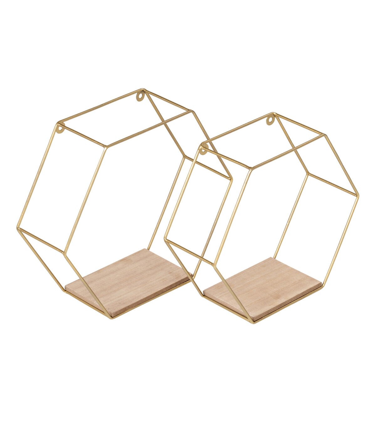 Sometimes designers prefer a shelf to recede into a wall, leaving the focus on its contents. At other times, it’s a bold move to make the frame a key part of the design. In the case of this set of decorative wall shelves, the design strategy sits firmly in the latter camp. This pair of hexagonal shelves command attention, both for their golden luster and for the way the two tracks of delicate steel framing create a striking 3D display box for whatever sits on the shelf. We love to hang these near an entryway or up a staircase, giving guests and housemates both a chance to consider and recollect the picture frame, tropical plant, or other cherished item.