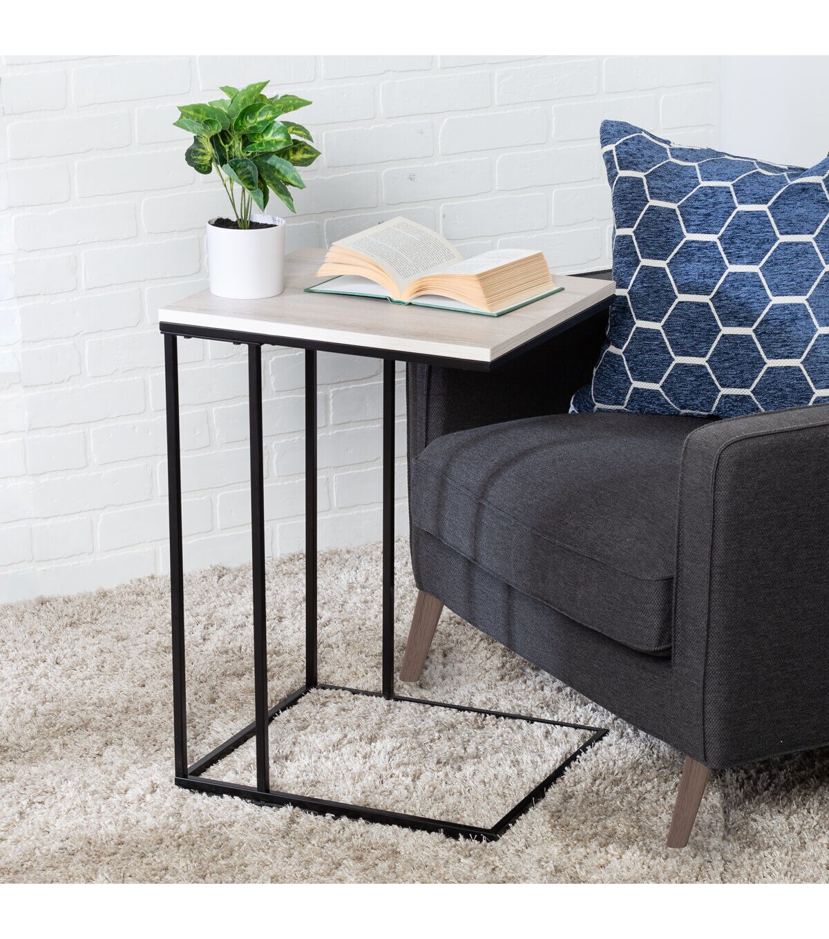 - Move snacks a little bit closer with end table’s cleverly designed C shape