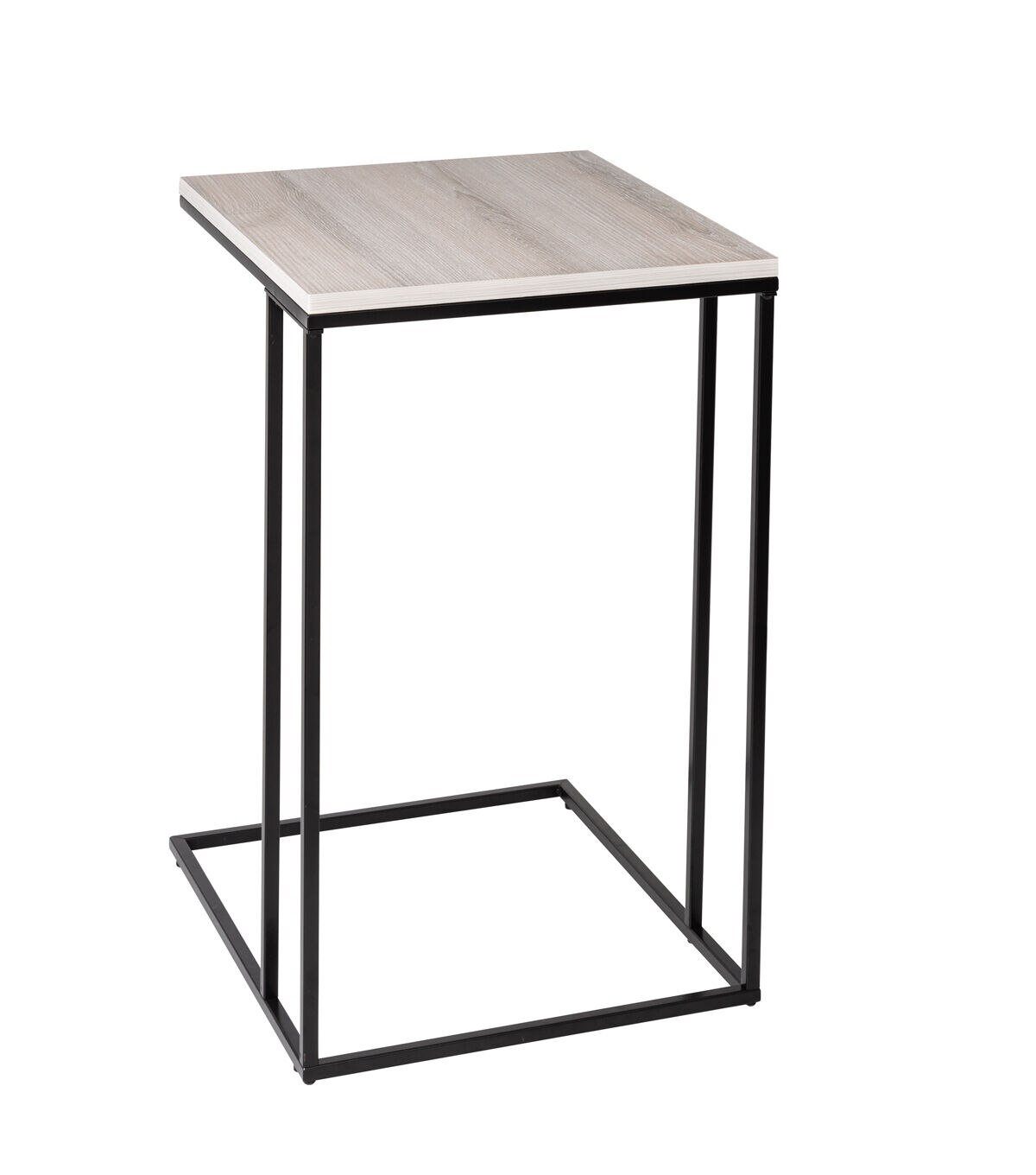Snacking has been called (by some snack lovers as) the mother of all invention. Think of all that’s been added to the world because a bright innovator refused to pause in snacking. The remote control. That hat that holds soda cans and plastic straws. And now, the C end table. This table’s ingenious design means that the wooden tabletop can lean over an armrest or a couch cushion, bringing bowls of popcorn or bags of chips closer to their final destination. It’s a clever and convenient design that’s also quite subtle. The sleek matte black metal legs support a natural wood grain tabletop for cool contrasting tones that lend a classic, timeless look to a space.
