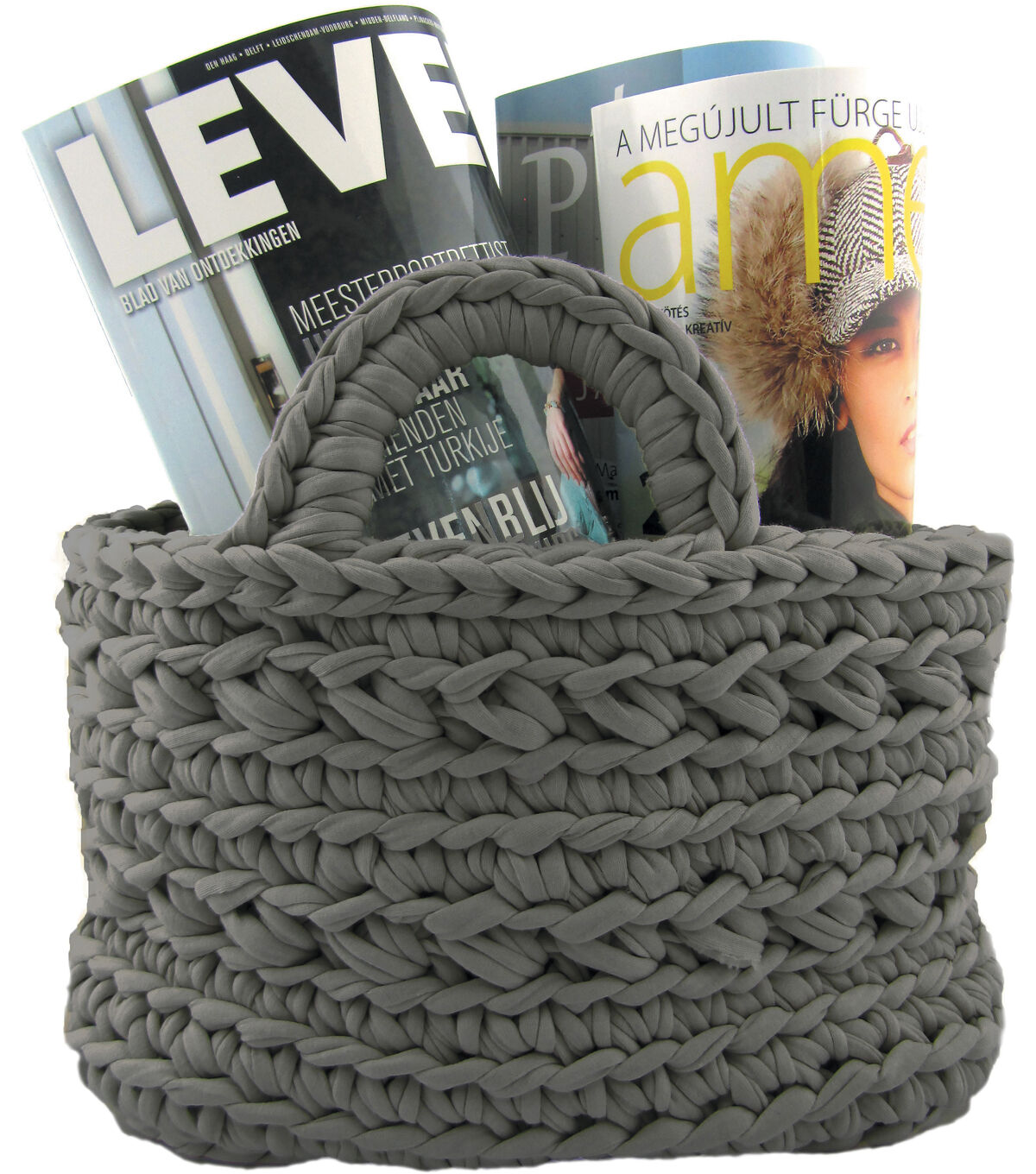 Create a lovely crochet basket with the Hoooked Zpagetti Revisto Basket DIY Crochet Kit-Antracite. Crochet baskets can be used to create unique storage solutions for your home. This hanging basket personalizes your organizing space, and makes a beautiful statement in your interior. The super chunky t-shirt yarns let you finish this project in just a few hours. This kit includes one roll of Zpagetti yarn or two half cones, a bamboo crochet hook, pattern instructions, accessories and deluxe gift packaging.