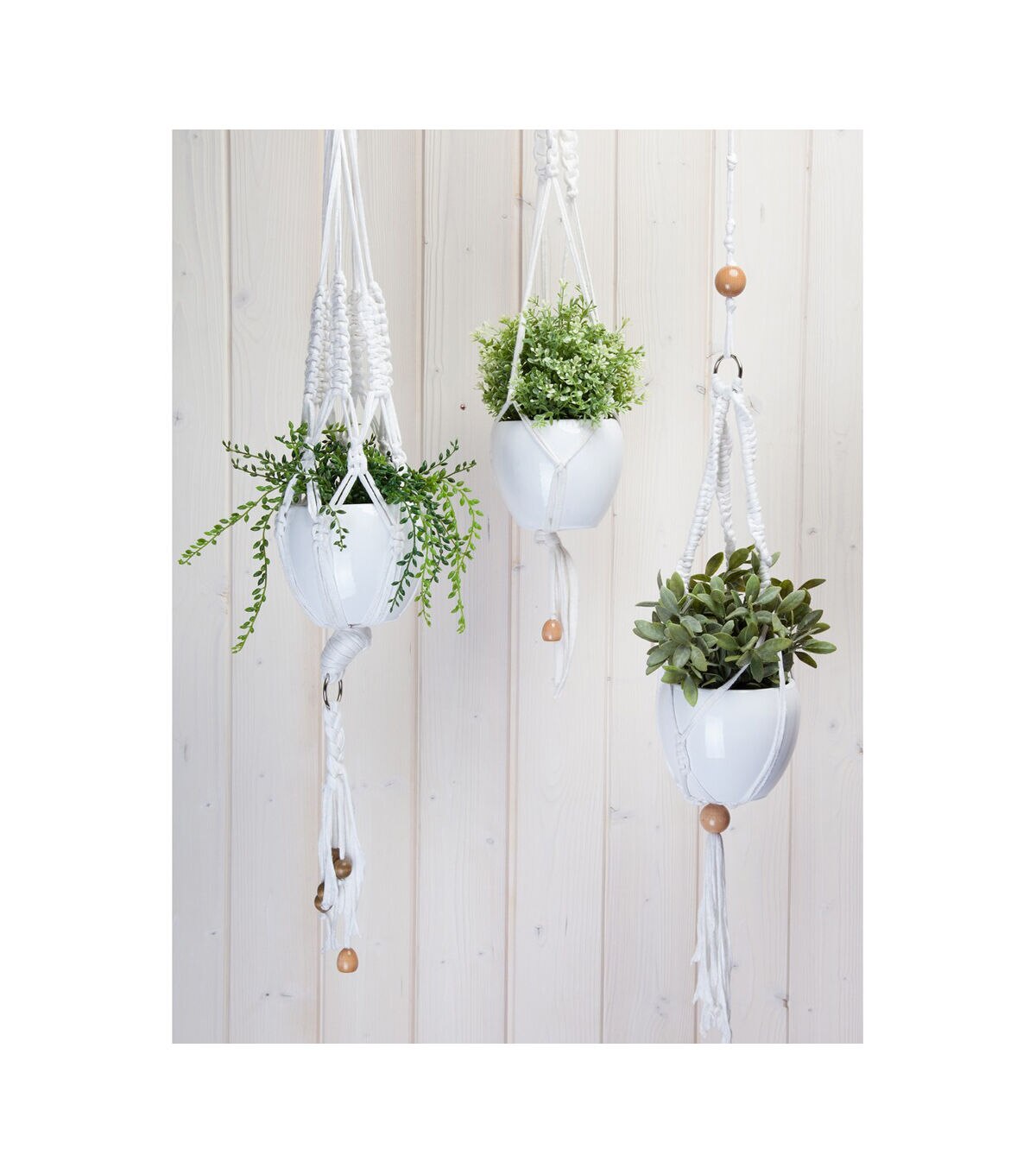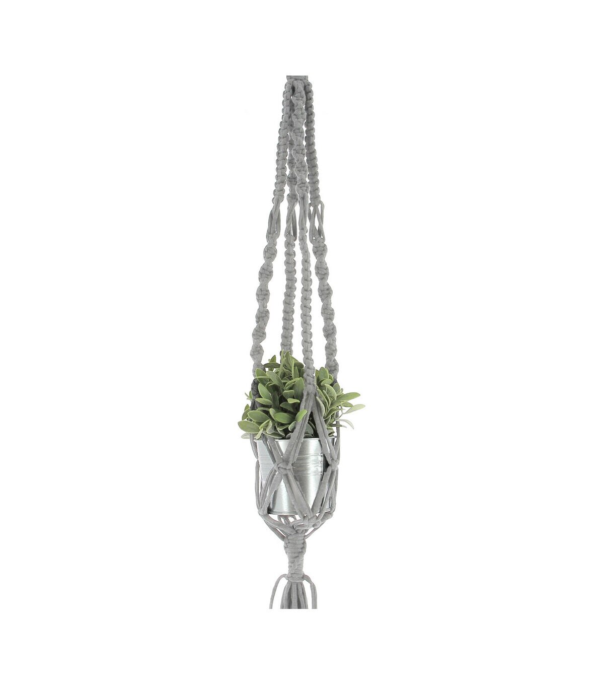 Learn how to make your own simple DIY Macrame Plant Hanger with the Hoooked Zpagetti Macrame Hanging Basket DIY Kit-Gray. This simple project is a fun way to add more greenery and life to your space. The macrame technique is making its comeback. This technique does not require a lot of practice, and there are endless variations possible. Get started and macrame yourself some fabulous hanging baskets. With this set, you can make three macrame hanging baskets for your plants. This kit contains 60 meters Zpagetti, a wooden ring, an XL Zpagetti needle, assorted wooden beads for one hanger and instructions.