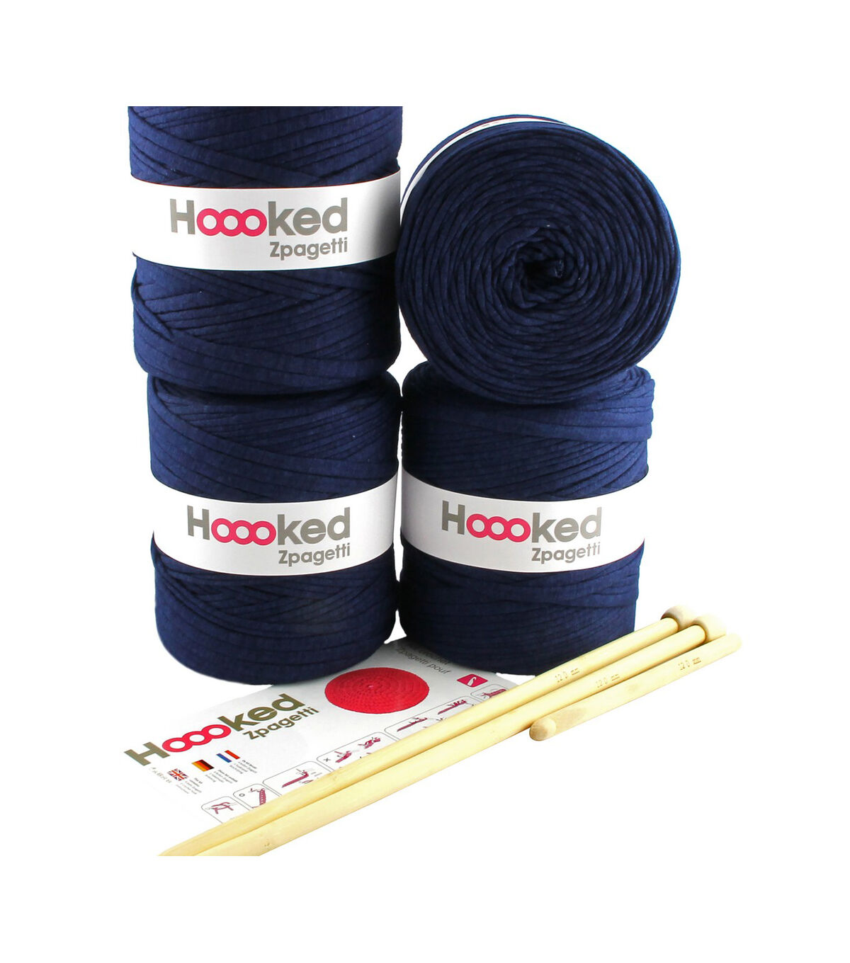 Make your own hand-crafted pouf with the Hoooked Zpagetti Pouf DIY Crochet & Knit Kit-Sailor Blue. You will love having this handmade pouf around to lean on or rest your feet. This kit includes a pair of jumbo knitting needles, a crochet hook and patterns for both the methods, so that you can pick your favorite craft technique. With this complete kit you can cover a pouf with a cross-section of 25.5 to 27.5 inches and a height of 11 to 15 inches. This complete pouf kit contains four mega bobbins Zpagetti, a pair of 12 mm bamboo XL knitting needles, a 12 mm bamboo crochet hook, knitted and crochet pattern pouf instructions and a portable gift box. Filling is not included.