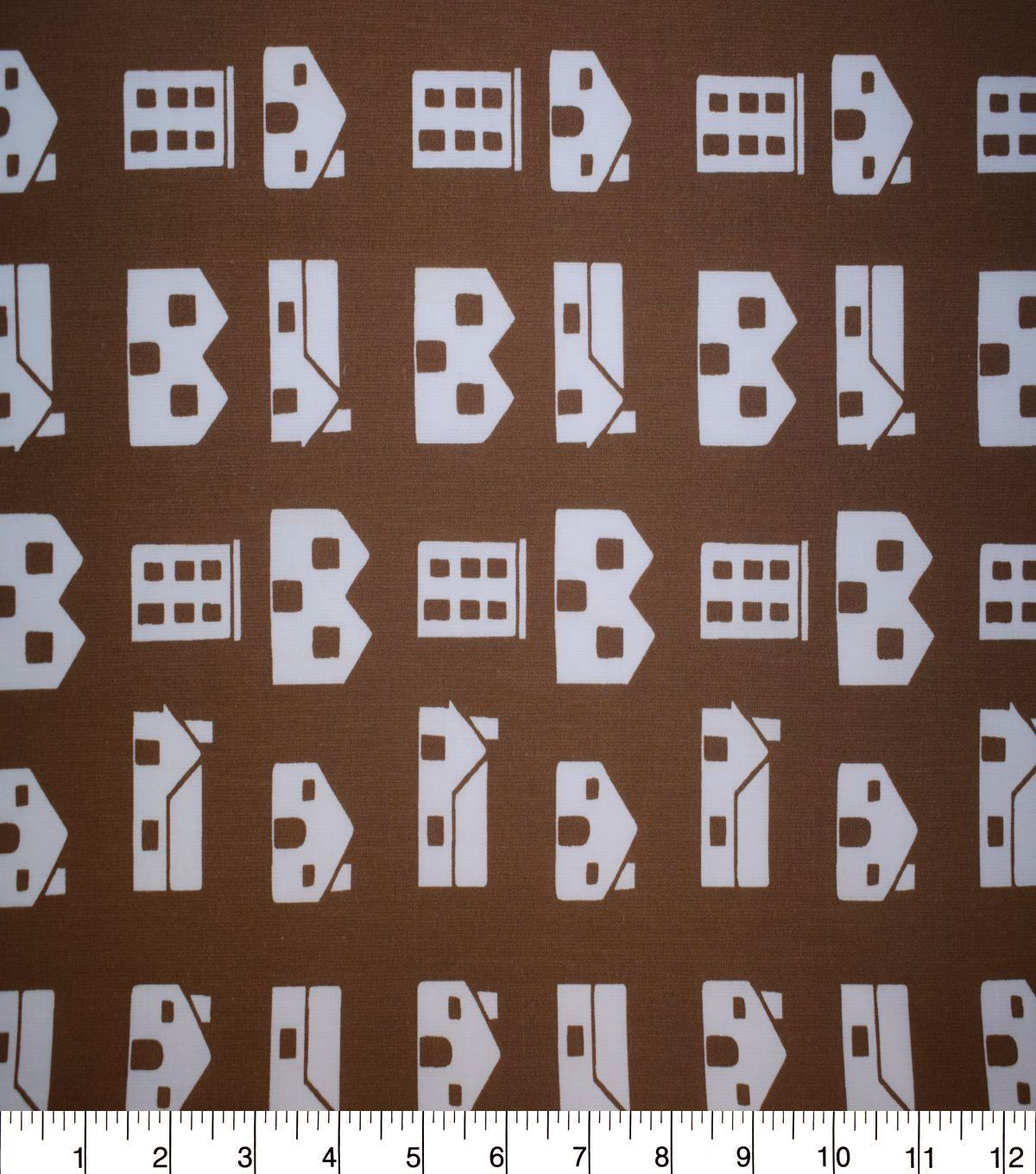 Houses on Dark Tan Quilt Cotton Fabric by Quilter's Showcase
