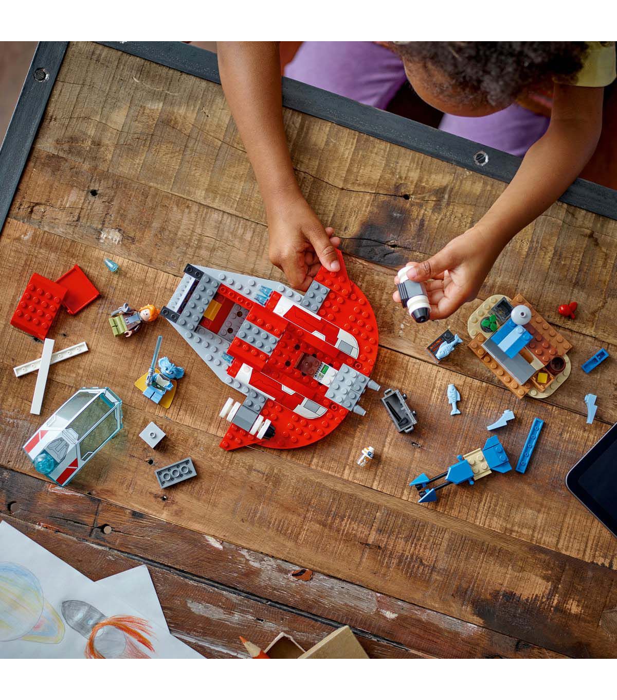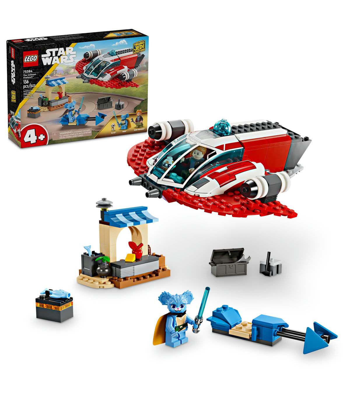 Introduce preschoolers aged 4+ to building and playing in the LEGO Star Wars universe with this starter set featuring The Crimson Firehawk starship from Star Wars: Young Jedi Adventures. It has a Starter Brick base to give young builders a confident start, and there’s space for all 3 included Star Wars characters (Nash Durango and Nubs LEGO minifigures, plus an RJ-83 LEGO droid figure) in the cockpit. The set also includes a Star Wars buildable speeder bike toy that fits inside the starship vehicle, plus a small marketplace build for creative play. The simple pictorial instructions are ideal for children who are only just learning to read. For added digital fun, the LEGO Builder app has zoom and rotate tools that let kids visualize their model as they build (perhaps with just a little help from an adult or older sibling). A top LEGO gift idea for Star Wars: Young Jedi Adventures fans, this collectible building toy mixes well with the Tenoo Jedi Temple set (75358 – sold separately).
