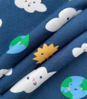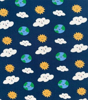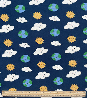 • Navy Cloud Earth Sun Microfiber Fabric by POP!