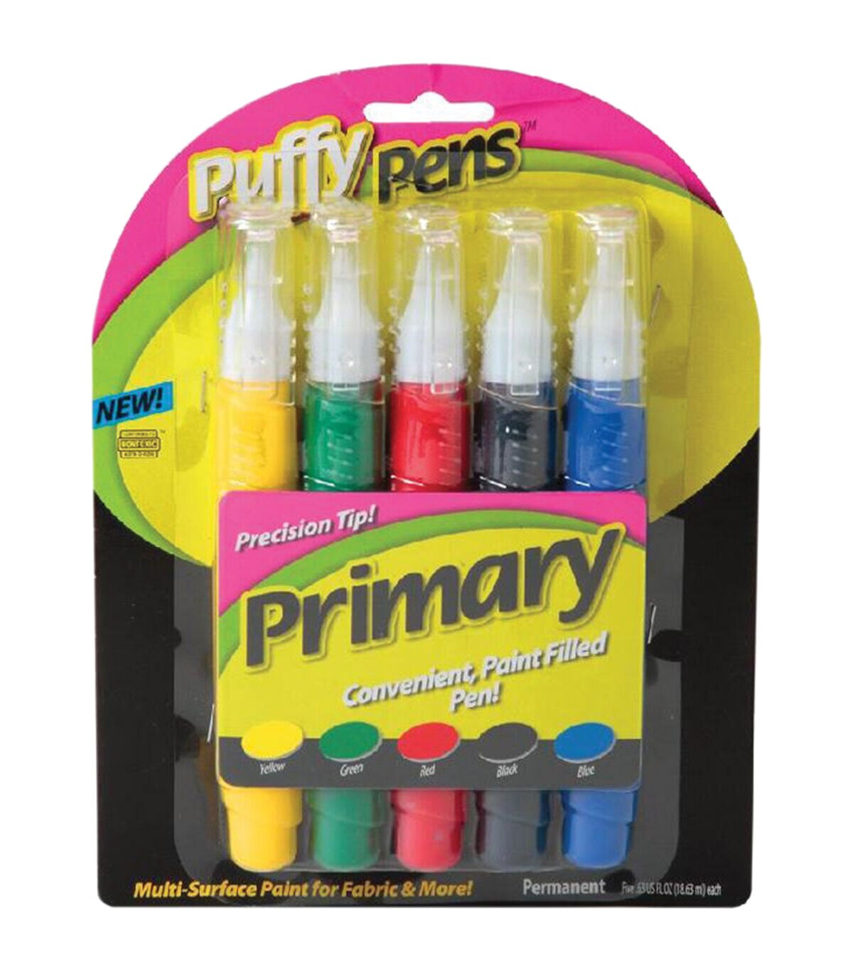 - Includes five pens of puffy paints
