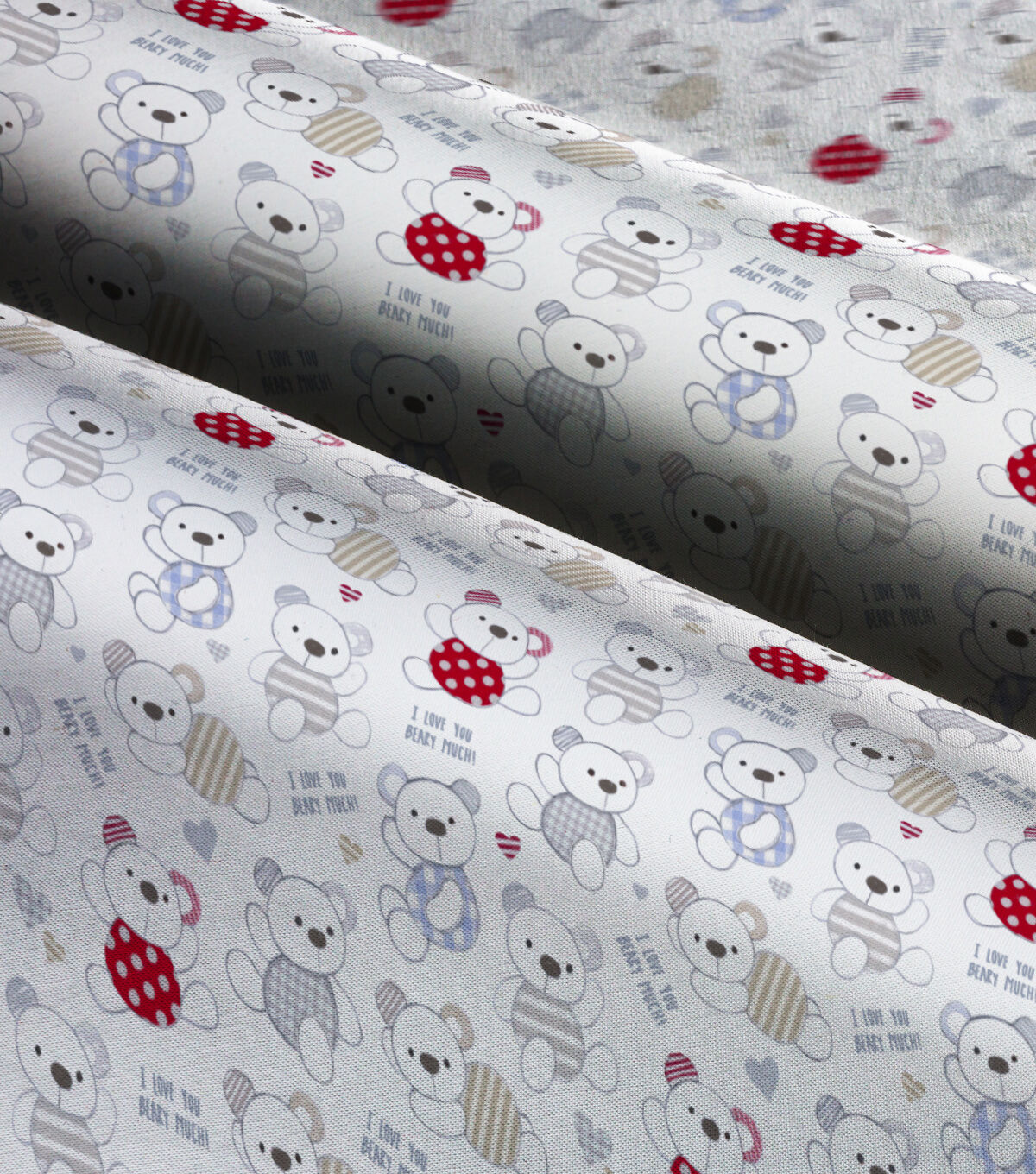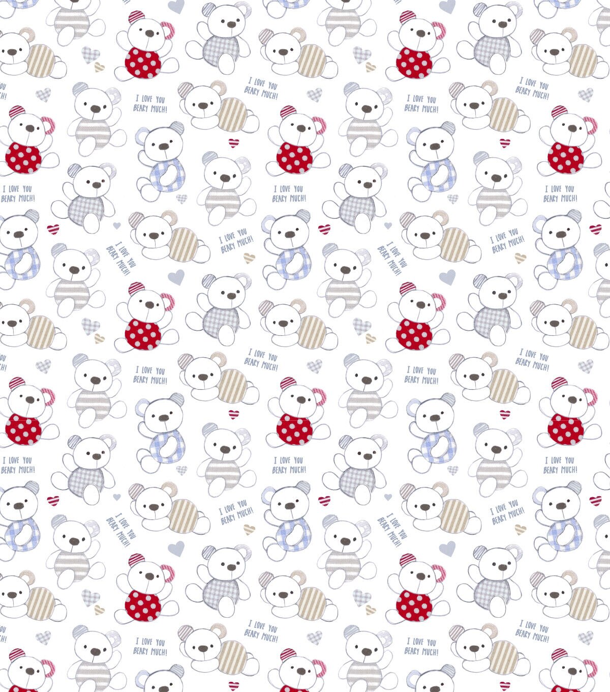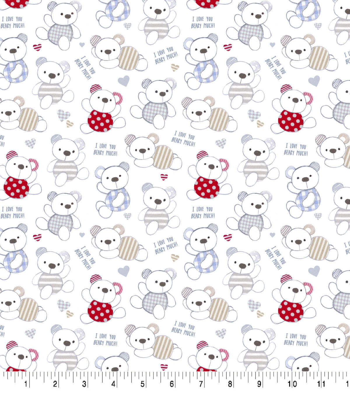 • I Love You Beary Much on White Nursery Flannel Fabric