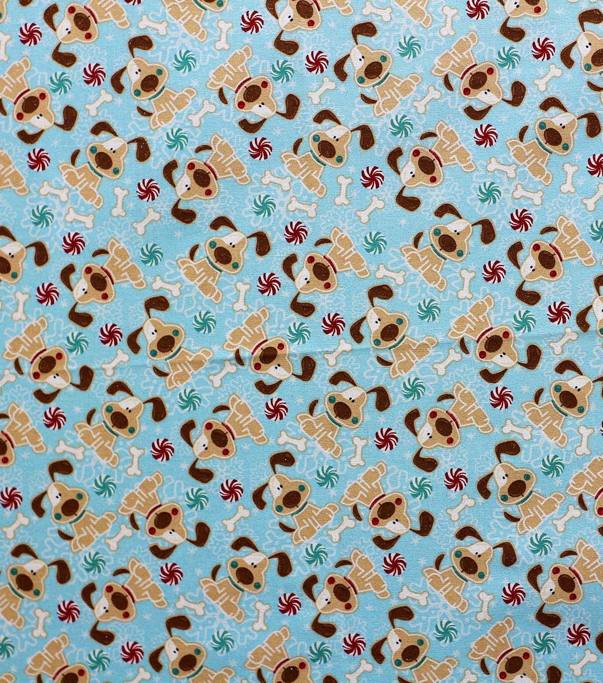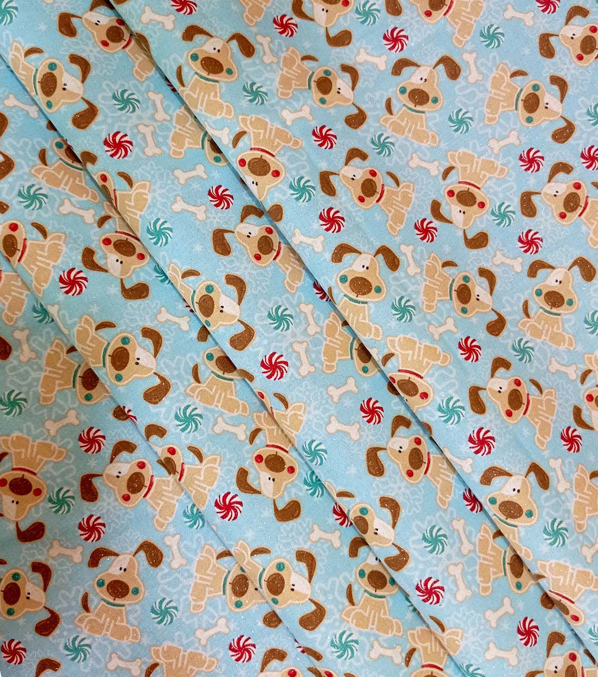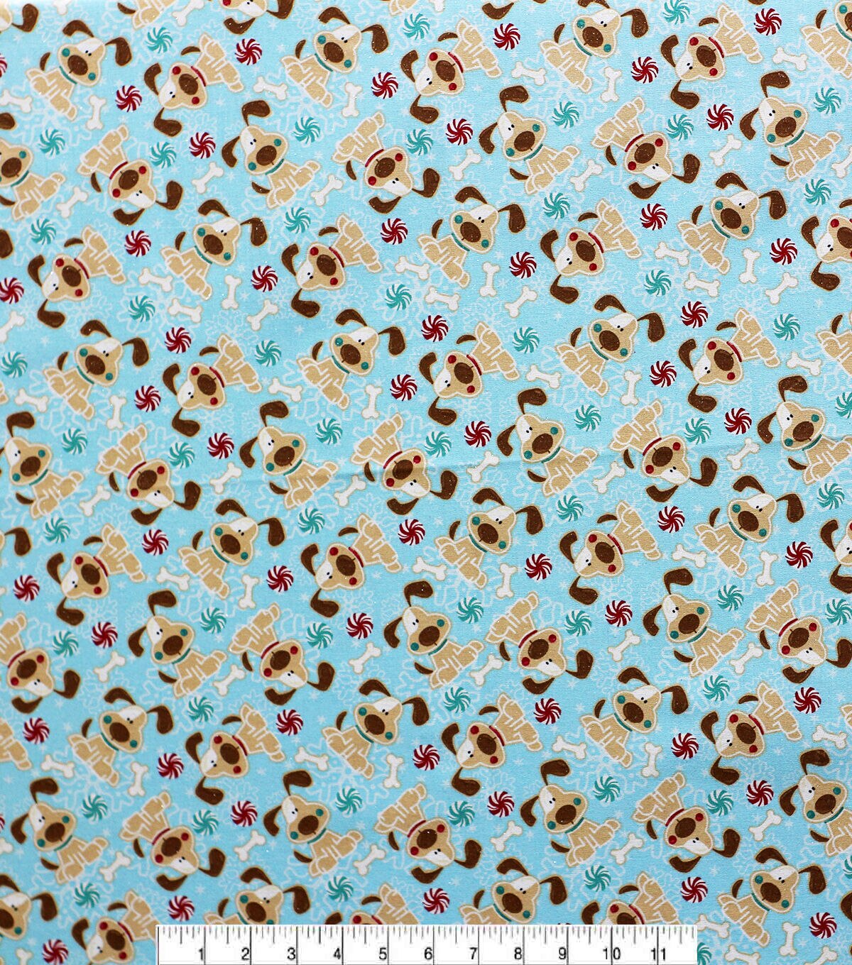 Get into the Christmas Spirit with I Woof You Gingerbread on Blue Christmas Glitter Cotton Fabric