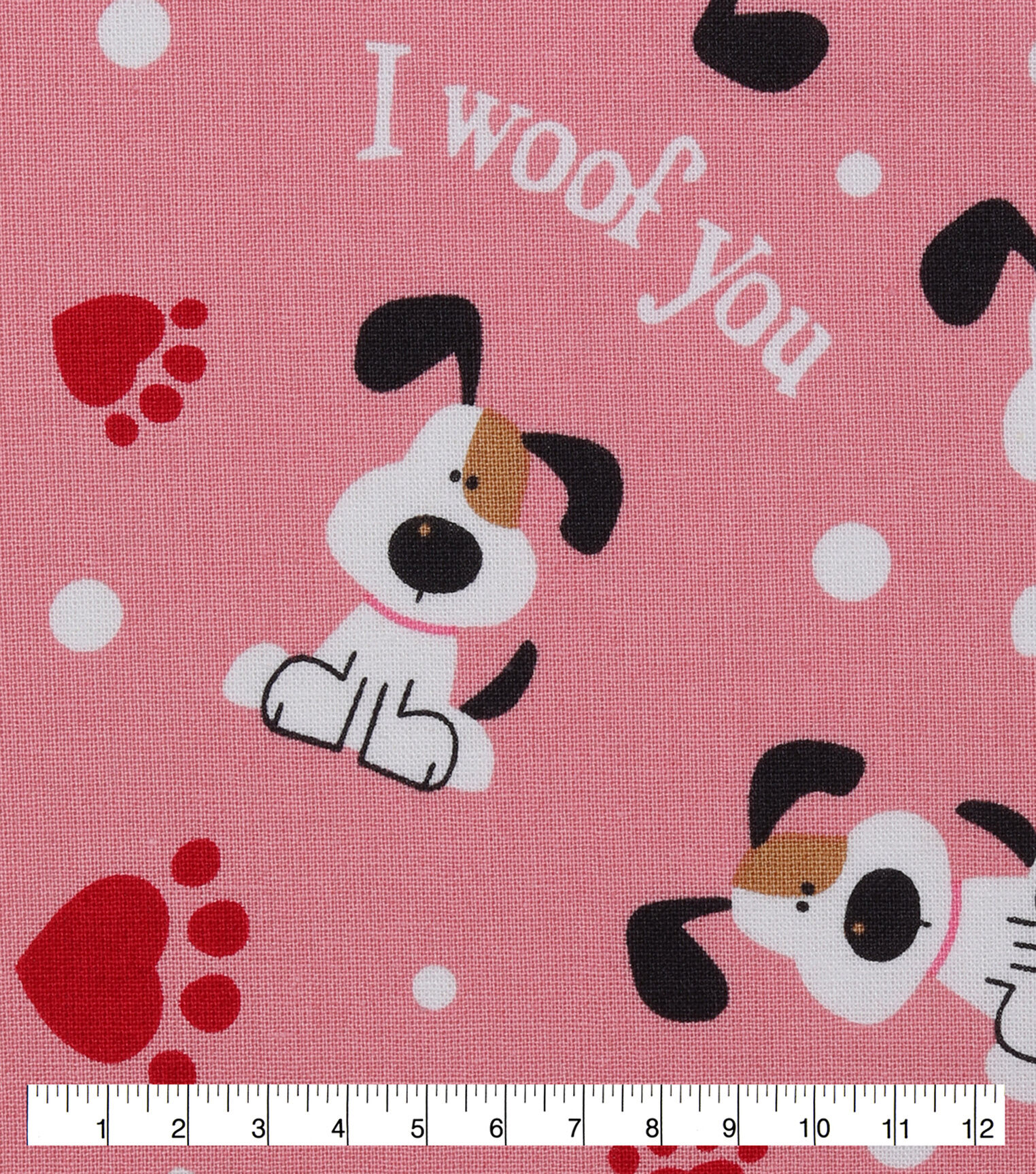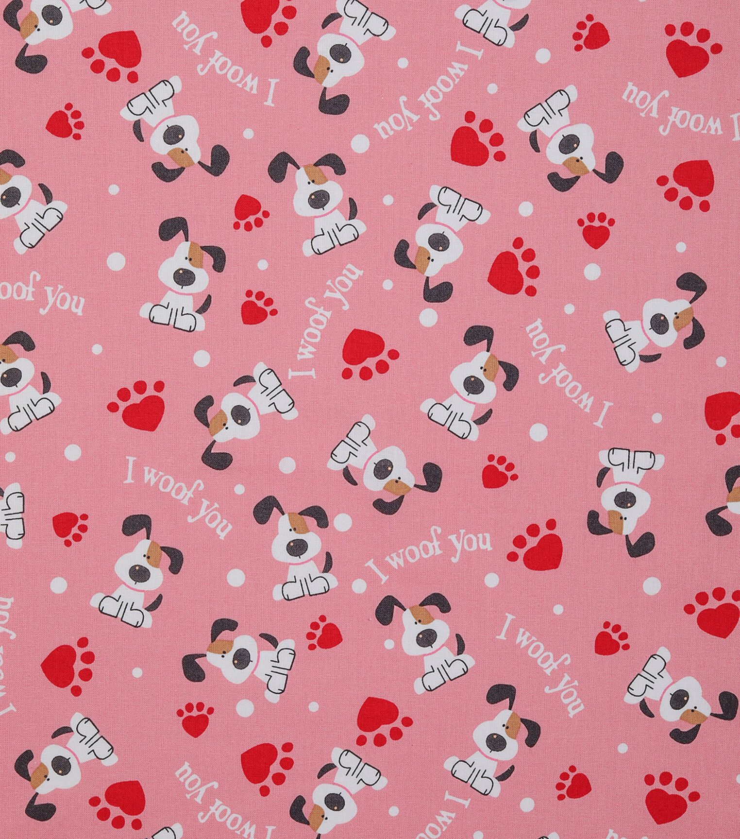 I Woof You on Pink Valentine's Day Cotton Fabric
