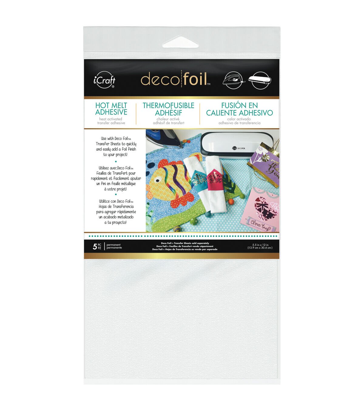 Create bright and shiny accents for your papercrafting or home decor projects using the iCraft Deco Foil Iron-on Adhesive Transfer Sheets. This pack contains five adhesive foil transfer sheets of 12 x 5.5 inches. Iron them onto cards, gift boxes, and other plain or textured paper or fabric surfaces for great results. These acid-free sheets are suitable for die-cutting or electronic cutting tools and can be easily laminated. They are washable.