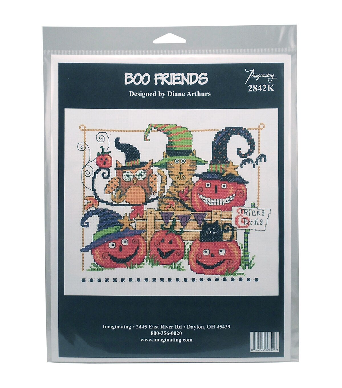 Celebrate the spirit of Halloween with the Imaginating Counted Cross Stitch Kit-Boo Friends. This adorable cross stitch design exhibits seasonal images like owls and pumpkins. Use the 14 count white fabric, floss, needle and layout page included in this cross stitch kit to complete the 7.5 x 9-inch design. You can frame the completed design to add it to your home decor, or use it to create a charming cushion cover.