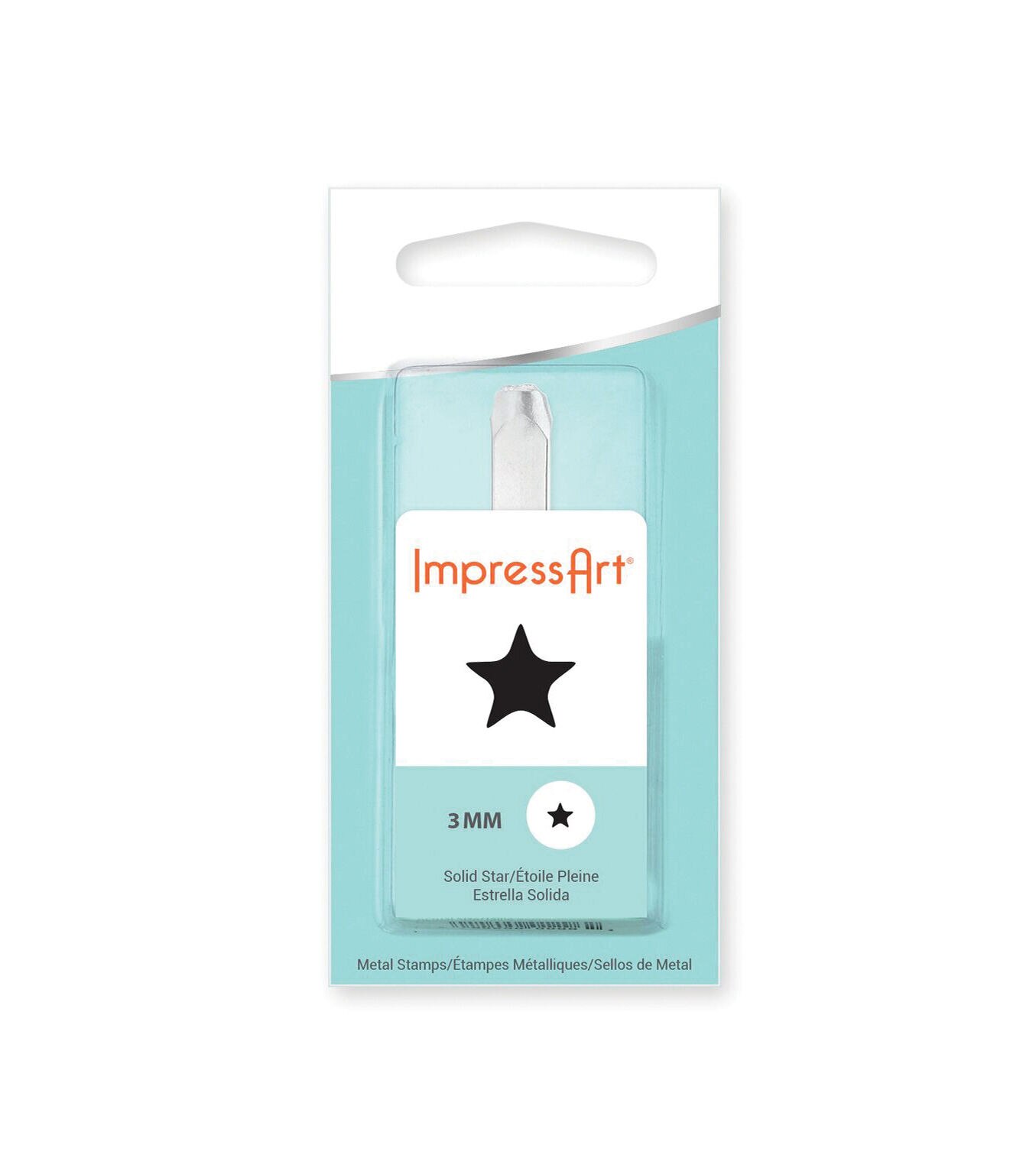 The professional quality ImpressArt Metal Stamp-Solid Star is manufactured to the highest standard for durability and alignment. It is precision-cut from carbon tool steel, hardened to last project after project. This stamp has an oil-free finish to protect against rust, and the side is labeled with the design for easy identification.