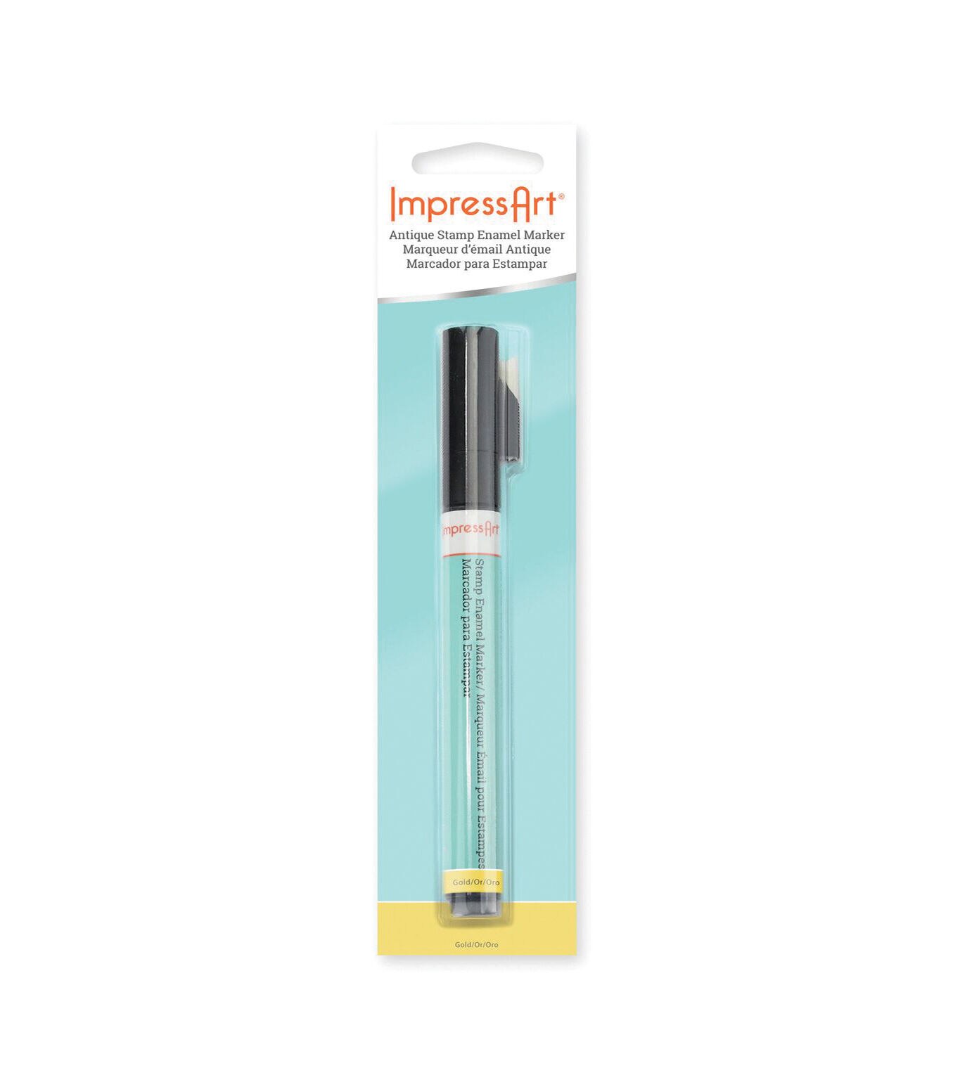The ImpressArt Antique Stamp Enamel Marker-Gold consists of acrylic ink. You can use it to darken stamped impressions so that your designs can be seen clearly. This convenient applicator marker makes highlighting impressions quicker, easier and cleaner. Simply run the tip of your marker over the stamped area from left to right, wait 1 to 3 minutes and wipe away excess ink with a soft cloth.