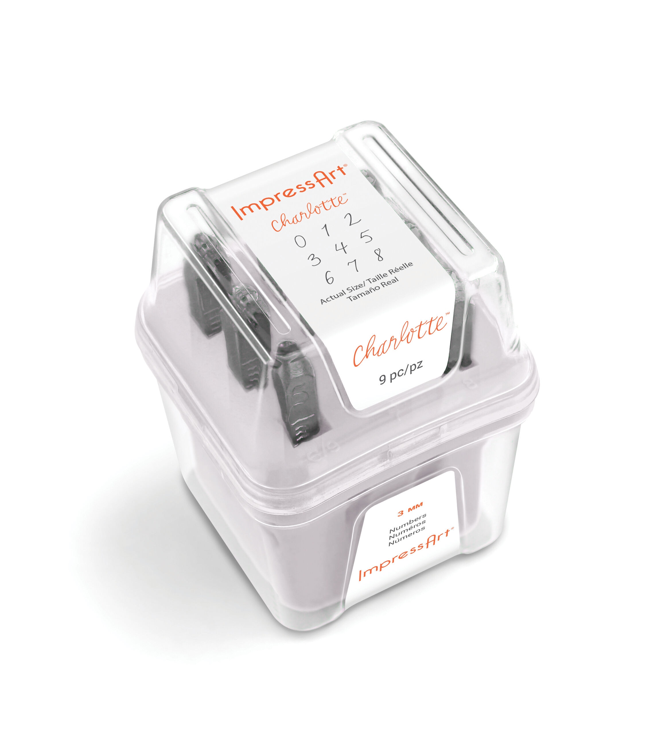 The ImpressArt Charlotte Metal Stamps-Numbers are manufactured to the highest standard for stamping jewelry and crafts. The side of each metal stamp is labeled with the number for easy identification and orientation. All stamps have an oil-free plated finish to protect against rust.