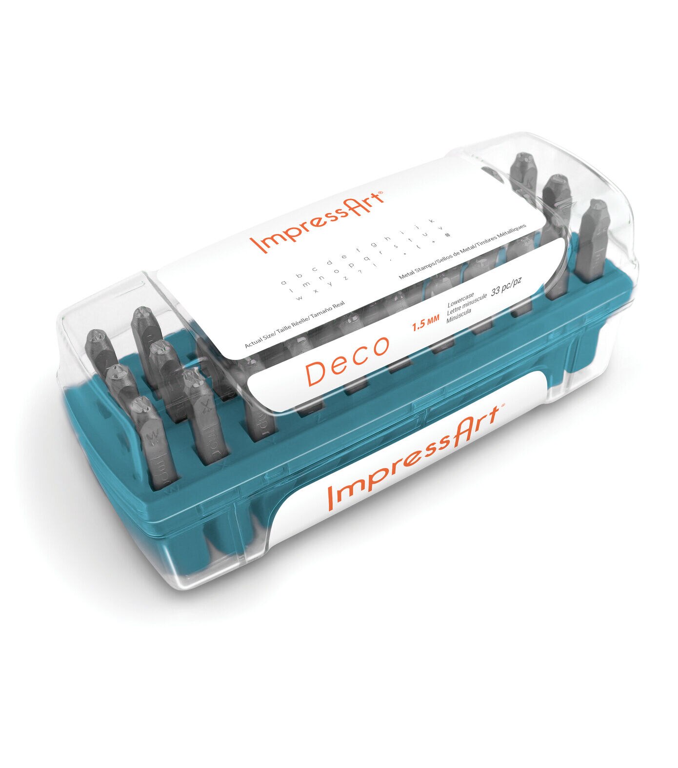The ImpressArt Deco Metal Stamps-Lowercase Letters are manufactured to the highest standard for stamping jewelry and crafts. The side of each metal stamp is labeled with the letter for easy identification and orientation.