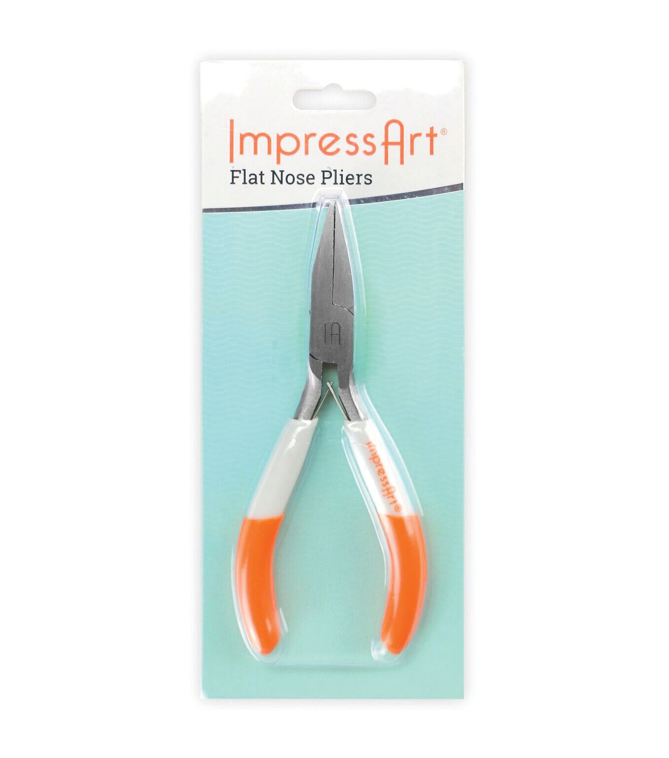 Use the ImpressArt Flat Nose Pliers to bend and make right angles in soft wire, open and close jump rings in combination with chain and round nose pliers. It comes with nylon jaws that protect the surface from nicking and marring.