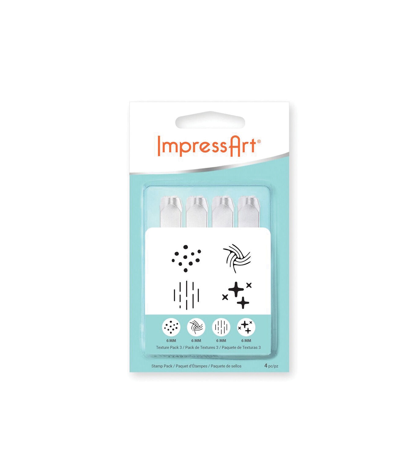 The professional quality ImpressArt Stamp Texture Pack Series 3 is manufactured to the highest standard for durability and alignment. Designs are precision-cut from carbon tool steel, hardened to last project after project. These stamps have an oil-free finish to protect against rust, and the side of each stamp is labeled with the design for easy identification. This pack consists of stamps in shapes including solid dot texture, vertical texture and cross texture.
