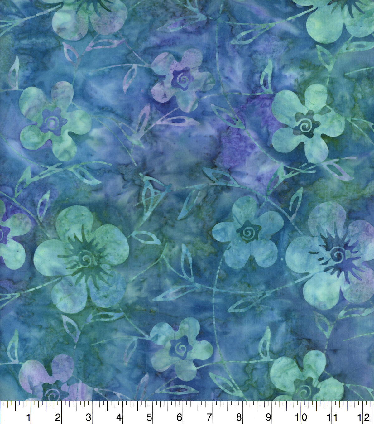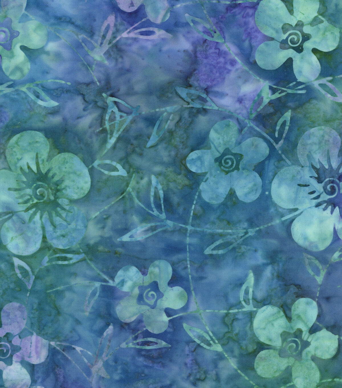 Indonesian Batik Cotton Fabric Floral Stems Blue Green