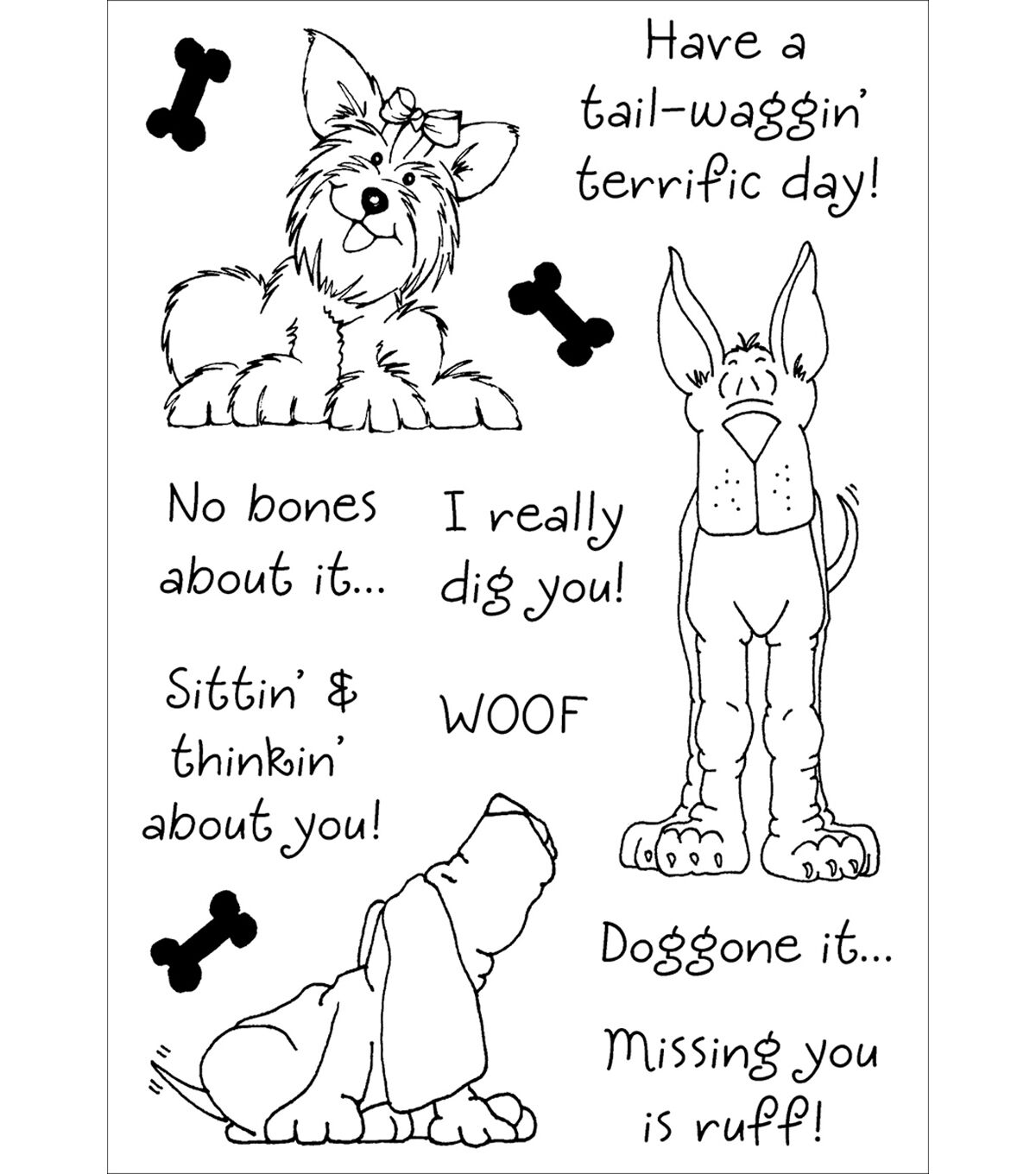 These adorable designs are perfect for cards and other paper crafts! This package contains Delightful Dogs #2 Set: 13 stamps on a 5-1/2x4 inch sheet. Made in USA.