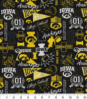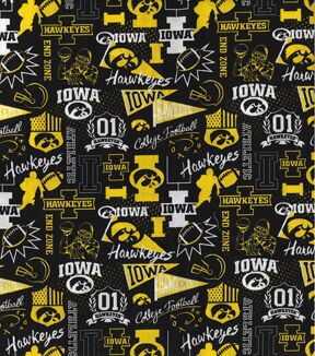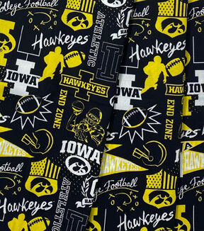 Iowa Hawkeyes on Black Cotton Fabric