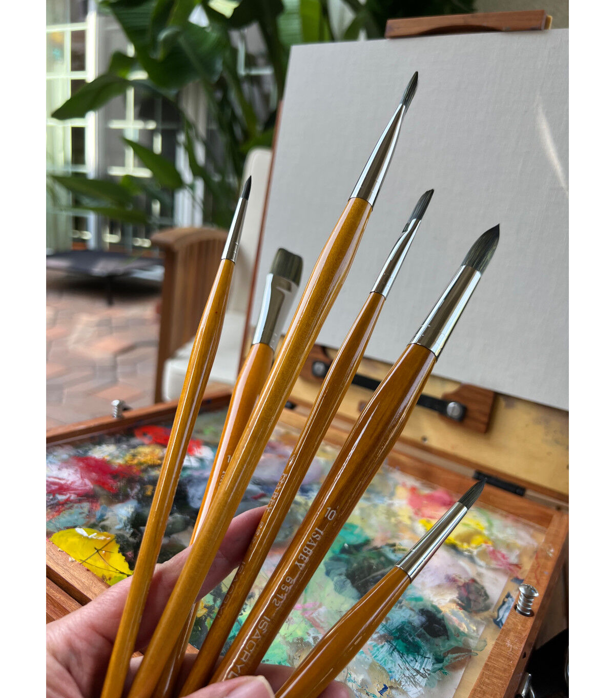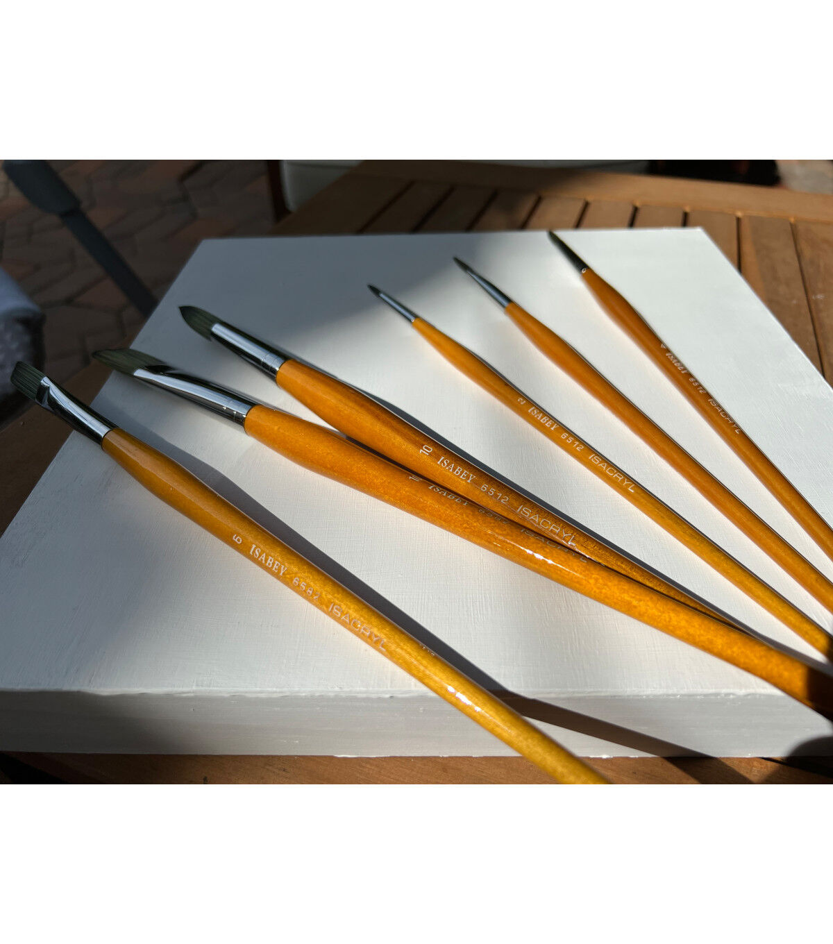The finest handmade synthetic brush available. A special mix of thick synthetic fibers replicates the finest natural hairs with the durability of a synthetic. Finely tapered hairs interlock keeping a perfect sharp point or edge. Special fiber resists splaying when used with solvents. Keeps its tight shape longer than any other synthetic.
