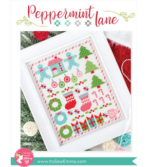 Deck the halls with boughs of holly and gingerbread men and wreaths and stockings! A delightful assortment of Christmas goodies in Peppermint Lane will usher in those holiday feels. Peppermint Lane Cross Stitch Pattern comes with full-color instructions, diagrams and supply list, including suggested DMC colors. The cross stitch is designed to work on 16-count cloth. Stitch Count: 145w x 185h. This package contains one pattern on durable 11x17 inch cardstock. Finished Size: 9.125x11.625 inches. Design: Peppermint Lane. Made in the USA.