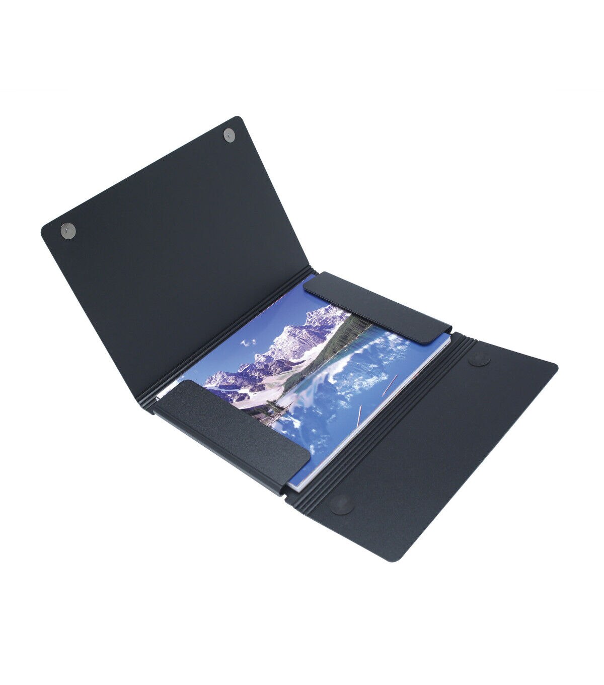 This portfolio case has a sleek simple design that is great for storing and transporting artwork, photography, canvases and Art Portfolio brand albums. It offers an acid-free, archival way to store and present your work. It opens and closes easily with a snap magnetic closure, and can hold up to a 1/4" of material.