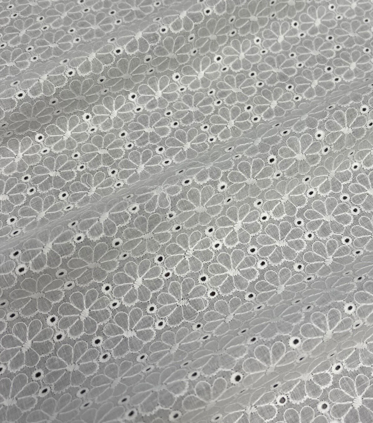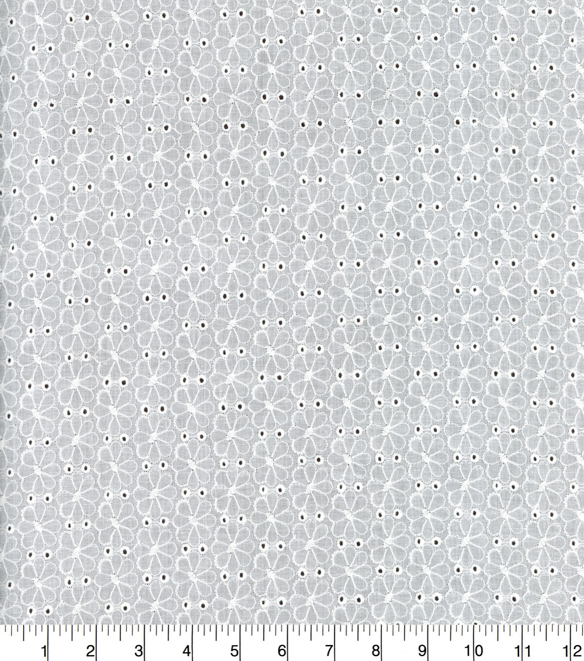 What better way to bring simplistic designs to your wardrobe and home decor than patterned cotton, like these floral eyelet designs for the feeling of spring? This fabric is attractive for its comfort, easy care, and easy sewing. You will always relish in the breathability of the material and how natural it feels to the skin. Enjoy.