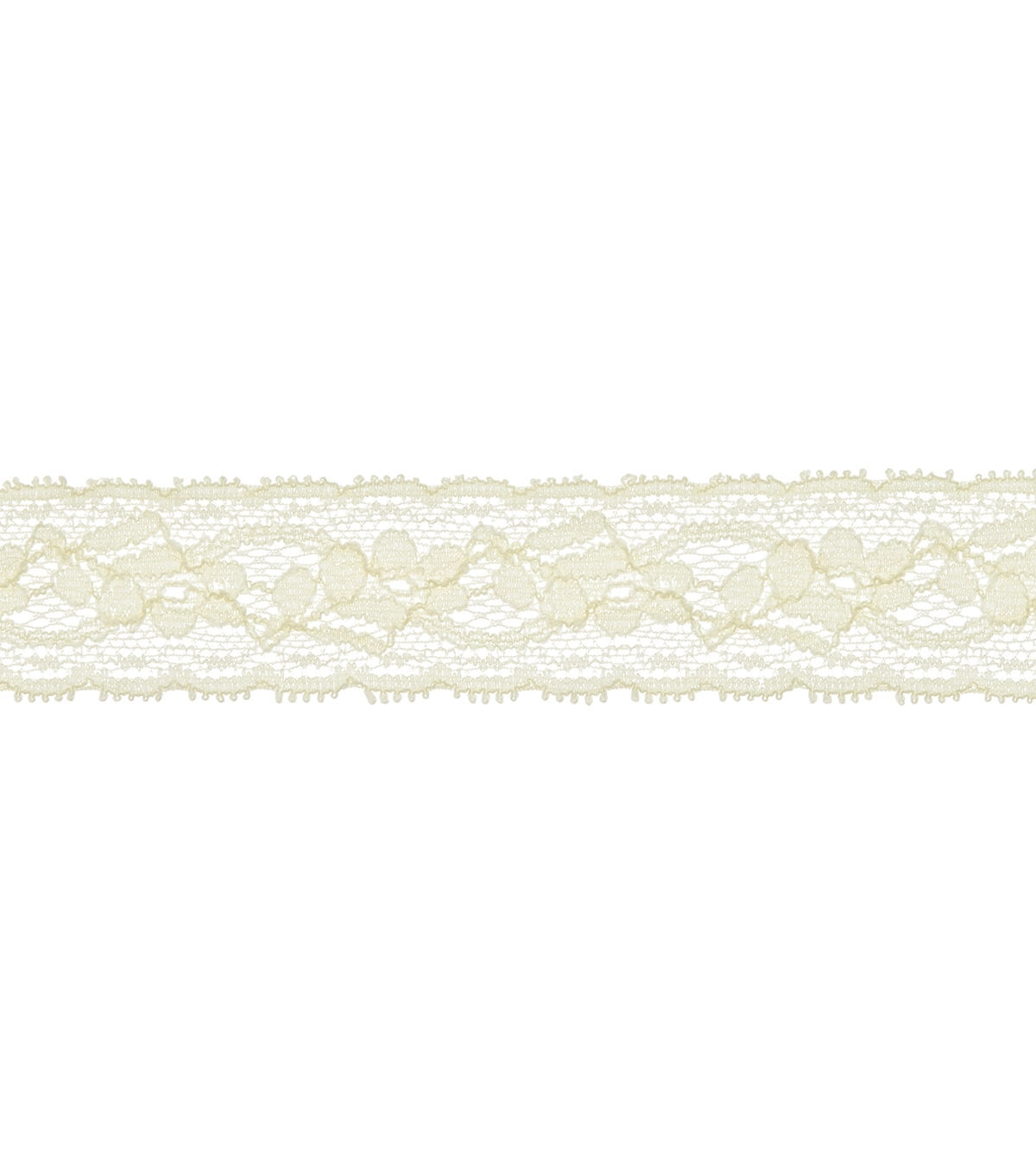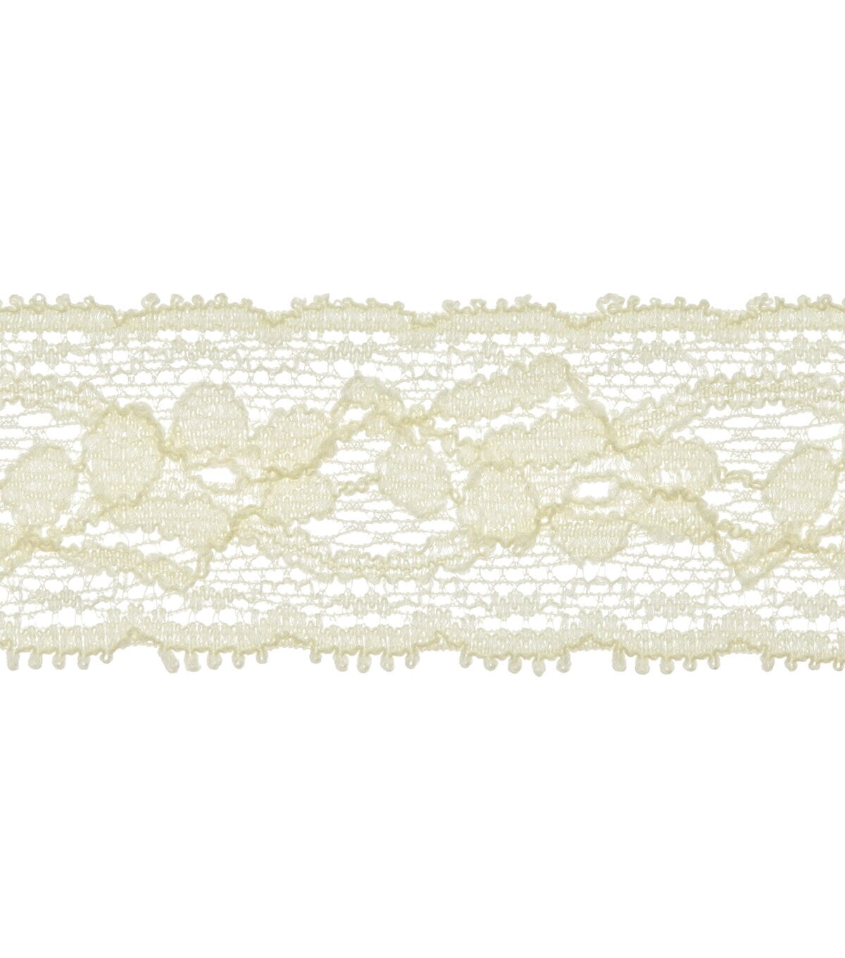 This elegant 1 1/4 inch ivory stretch lace trim is a nylon/spandex blend. Use this elegant trim for apparel design, home décor inspirations and so much more!
