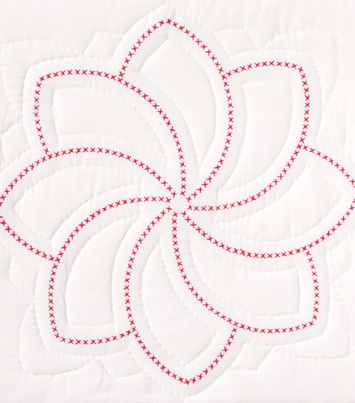 JACK DEMPSEY-Stamped White Quilt Blocks. Create a beautiful quilt top using this great kit. It consists of individual squares to stitch and join together to form a quilt top. The stitching designs have been stamped using ink that washes away with any liquid and the fabric is a cotton/poly blend broadcloth. This package contains six 18x18 inch quilt squares, instructions for completion and care and complete list of DMC floss requirements. Fabric, backing, batting, hoop, needle, thread and floss all sold separately. Design: XX Pinwheel. Made in USA.