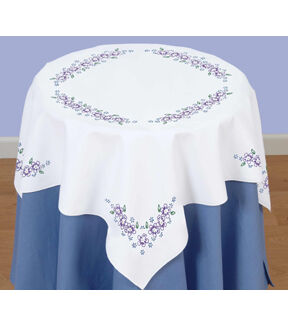 Create a beautiful table topper using this great kit. The stitching designs have been stamped using ink that washes away with any liquid and the fabric is a cotton/poly blend broadcloth. This package contains one 35x35 inch square table topper, instructions for completion and care and a complete list of DMC floss requirements. Hoop, needle and floss sold separately. Design: Lavender Flowers. Made in USA.