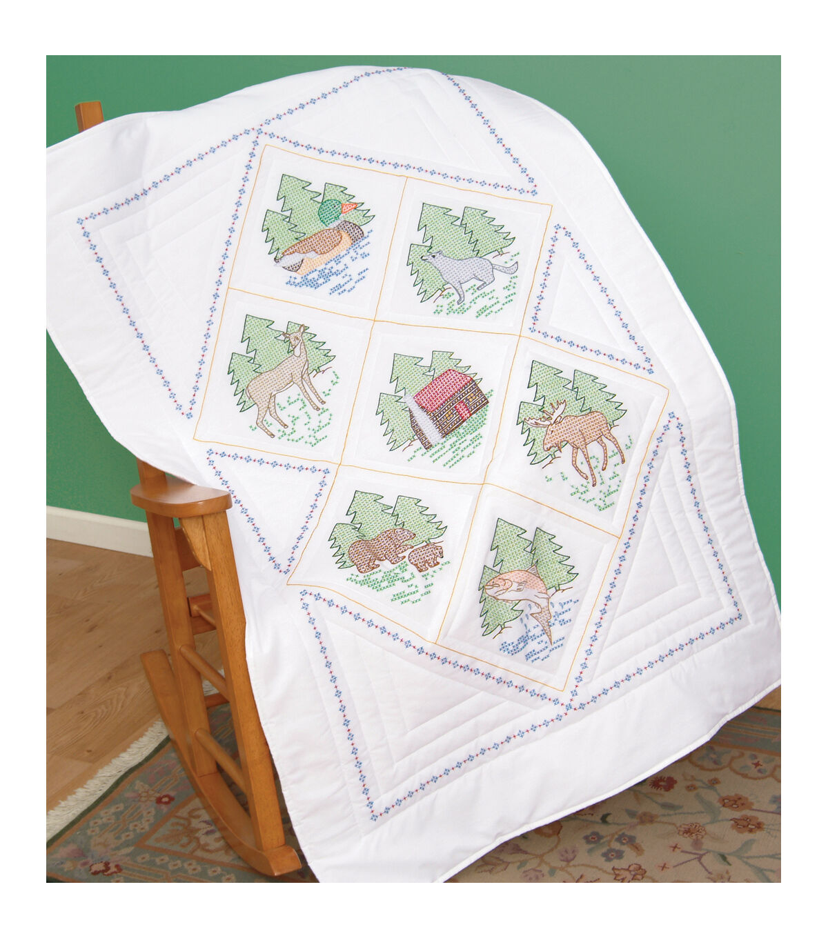 - Includes one lap quilt top of broadcloth with instructions and floss requirements.