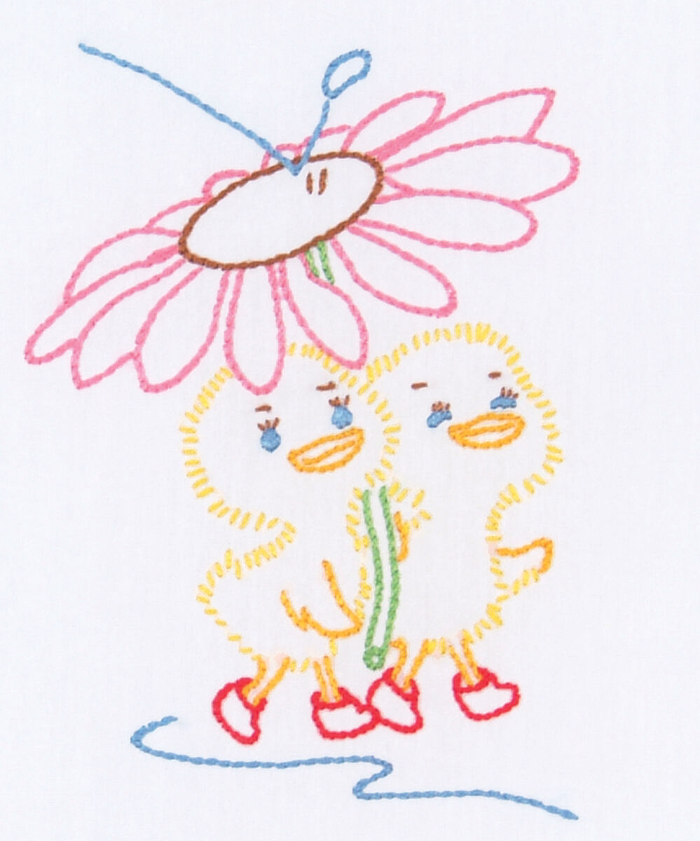 JACK DEMPSEY-Stamped White Quilt Blocks. Create a beautiful quilt top using this great kit. It consists of individual squares to stitch and join together to form a quilt top. The stitching designs have been stamped using ink that washes away with any liquid and the fabric is a cotton/poly blend broadcloth. This package contains twelve 9x9 inch quilt squares; instructions for completion and care and a complete list of DMC floss requirements. Fabric; backing; needle; thread and floss all sold separately. Design: Duckies. Made in USA.