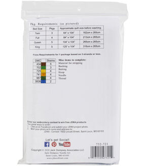 Create a beautiful quilt top using this great kit. It consists of individual squares to stitch and join together to form a quilt top. The stitching designs have been stamped using ink that washes away with any liquid and the fabric is a cotton/poly blend broadcloth. This package contains six 18x18 inch quilt squares, instructions for completion and care and complete list of DMC floss requirements. Fabric, backing, needle, thread and floss all sold separately. Design: Golden Sunflowers. Made in USA.
